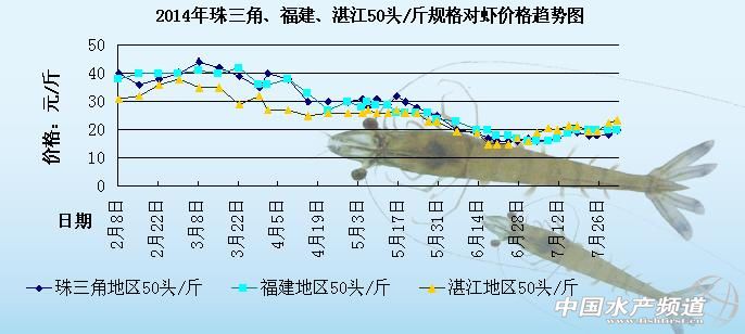 文/中國水產頻道 張靜 中國水產頻道原創(chuàng)報道,下圖是2014年珠三角地區(qū)、湛江地區(qū)和福建地區(qū)50頭/斤規(guī)格對蝦的價格趨勢圖。整個圖很明顯的就可以區(qū)分為2個不同的部分:2月份到4月份整體的蝦價處于非常高企的狀態(tài);5月份至7月初整體蝦價就一直不斷下滑,整體價格比較低迷,7月中旬蝦價開始出現(xiàn)上漲。具體價格趨勢如下: 據(jù)悉,本周各地的對蝦出塘量不大,蝦價紛紛上漲,現(xiàn)在是投苗的高峰期,養(yǎng)殖戶投苗熱情高漲只是苗種短缺,養(yǎng)殖戶近期都在排隊等苗。預計后市的整體蝦價會趨于上漲狀態(tài)。具體價格如下: 珠海斗門地區(qū)的蝦價相比上周上漲2元左右/斤;福建龍海地區(qū)的蝦價相比上周暫時沒有明顯變化;湛江企水鎮(zhèn)地區(qū)的蝦價相比上周上漲1-2元/斤;海南三亞地區(qū)的蝦價相比上周上漲1元/斤。 據(jù)珠海斗門地區(qū)的賀老板消息,本周斗門地區(qū)的對蝦出塘量比較少,每天的對蝦收購量是2000-3000斤左右,收購量比較平穩(wěn)。近期的對蝦收購都是以水車為主,按照對蝦的出塘情況和市場銷售情況來看,預計到8月份價格會更高而且需求量會更大,因為往年一到8月份結婚的人會很多,相對來說對蝦的需求就會加大,蝦價也會再次上漲。賀老板說,去年中秋節(jié)的時候,斗門地區(qū)的40頭/斤規(guī)格的對蝦價格高漲到26元/斤,照此推斷斗門地區(qū)后市的蝦價會趨于不斷上漲的狀態(tài)。 據(jù)湛江企水鎮(zhèn)的陳先生消息,近期企水鎮(zhèn)地區(qū)的對蝦存塘量少,出塘量也很少,整體蝦價處于高位上漲的趨勢。臺風的登陸造成苗種短缺,現(xiàn)在企水鎮(zhèn)地區(qū)很多養(yǎng)殖戶正在等苗,湛江遂溪地區(qū)預計再過一個星期左右就有苗種可以供應,湛江徐聞地區(qū)可能要再等15天左右才有苗種供應。(以上價格及觀點僅供參考) 【關鍵字】: 對蝦 對蝦價格 對蝦養(yǎng)殖 (中國水產頻道水產價格信息共享Q群:245296163,歡迎提供各種水產品一線價格信息,聯(lián)系QQ:139020150) |
