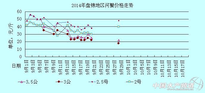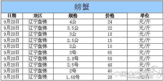 中國(guó)水產(chǎn)頻道獨(dú)家報(bào)道,據(jù)網(wǎng)友提供消息,2014年9月28日遼寧盤錦河蟹價(jià)格行情如下: 遼寧盤錦河蟹價(jià)格信息由盤錦市雙臺(tái)子區(qū)東風(fēng)市場(chǎng)華陽(yáng)河蟹行(電話:18040020068;15942702021;0427~6616465)提供,由于價(jià)格波動(dòng)及訂貨量影響,以上價(jià)格為收購(gòu)價(jià)格,實(shí)際價(jià)格請(qǐng)聯(lián)系電話。 【關(guān)鍵字】:河蟹價(jià)格 河蟹行情 河蟹塘頭價(jià) |