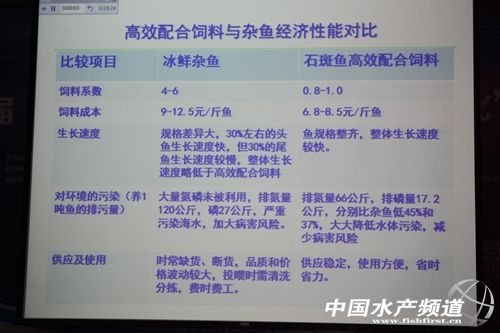 文/中國水產頻道 楊明 人工配合飼料發展的3個階段 報告中麥老師將石斑魚人工配合飼料的發展進程分為三個階段,2005年以前配合飼料比例少于1%,石斑魚養殖幾乎全部使用冰鮮雜魚;2006-2011年配合飼料比例提升至5%,標苗期已廣泛使用配合飼料,但是養成期仍以冰鮮雜魚為主;2012-2014年配合飼料比例從5%提升至10%,步入快速成長期,優質高效配合飼料已廣泛應用于標苗期和養成前期,并快速向養成中后期延伸。 配合飼料相對于冰鮮投喂的優勢 麥老師指出,石斑魚年產量約9萬噸,每年消耗40萬噸野雜魚,占全國水產投喂野雜魚總量的10%,石斑魚配合飼料發展嚴重滯后。造成該現象的原因之一是老百姓認為魚吃魚會長得更快,麥老師指出這是一種錯覺,投喂冰鮮野雜魚只會使頭魚規格大,但人工配合飼料會使石斑魚規格更加整齊,且成本可降低16-28%。 據海南瓊海椰林合順養殖場的實驗數據,始重175g的珍珠龍膽每天投喂1次人工配合飼料,分別在35天、70、105稱重,結果顯示,與直接投喂野雜魚比較,投喂某人工配合飼料可使石斑魚的增重率提高77.5-107%,養殖成本由9-12.5元/斤魚降到6.8-8.5元/斤魚,磷排泄減少51%、氮排泄減少60%,節約44-52%的野生雜魚資源。通過上述數據,麥老師指出,配合飼料必將全面取代冰鮮雜魚,且飼料系數在0.8-1.4之間都屬于正常,無需一定小于1.0。 圖2 高效人工配合飼料和冰鮮野雜魚效果對比 圖3 投喂參數推薦 當前存在的三個問題 麥老師報告中指出,石斑魚營養與飼料開發中還存在三個問題: 1.石斑魚營養缺乏全面系統的研究,營養參數還不完善。目前的研究主要集中于青斑幼魚,缺乏不同生長階段青斑營養需求的系統研究。 2.配合飼料制作工藝亟待提高。工藝問題要從魚的需求來研究,而不是人,不必考慮外形美觀等問題。 3.應用技術推廣不力。 中國水產頻道(m.fuqitext.com)獨家報道,轉載請說明出處,違者追究法律責任, 謝謝合作。 【關鍵字】:石斑魚 麥康森 水產養殖 |