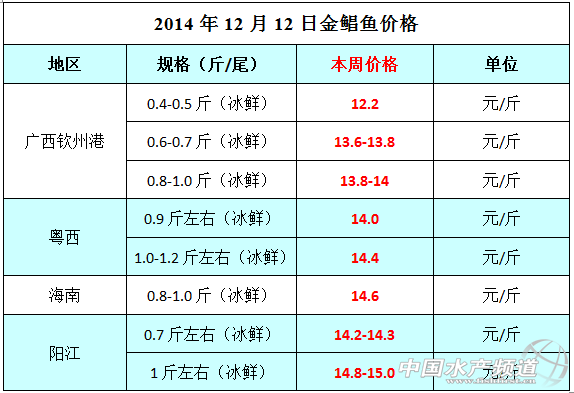2014年12月12日廣西、湛江、海南、陽江金鯧魚碼頭價