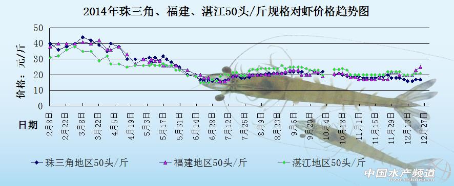 文/中國水產頻道 張靜 中國水產頻道原創報道,下圖是2014年珠三角地區、湛江地區和福建地區50頭/斤規格對蝦的價格趨勢圖。整個圖很明顯的就可以區分為2個不同的部分:2月份到4月份整體的蝦價處于非常高企的狀態;5月份至6月下旬整體蝦價就一直不斷下滑,整體價格比較低迷,7月初蝦價開始出現上漲,到了9月份,因為存塘量和銷售量等問題,整體蝦價一直不斷的浮動,但是升降幅度不算太大;10月國慶假期之后,市場剛性需求明顯減少,對蝦銷售進入淡季,各地的蝦價一直處于下行的狀態。11月中旬,各地進入清塘高峰期,各地蝦價因存塘量和銷量不同,蝦價升降不一。11月下旬對蝦越來越少,價格也逐漸穩定。12月初各地大降溫,養殖戶出蝦多,市場沖擊致使蝦價出現波動。12月中旬,各地存塘蝦量明顯大減,整體銷售量沒有增多,蝦價趨于平穩。12月中下旬,各地的白水塘對蝦存量稀少,市場銷售量有所好轉,整體蝦價也開始上漲。具體價格趨勢如下: 據悉,冬至節日剛過,最近幾天各地的對蝦市場銷售量整體比較理想,只是現有存塘合規格的對蝦不多,整體蝦價也是處于穩中有漲的狀態。具體價格如下: 據中山地區的漁藥經銷商謝老板消息,中山地區最近幾天的蝦價一般般,因為蝦很少,特別是白水塘的對蝦已經賣得七七八八了,剩余存塘的規格多數偏小。今年中山地區的冬棚蝦養殖普遍密度偏高,現在剛好是轉季的時候,養殖戶需要注意保溫,對蝦脫殼時要適量的補充微量元素、鈣和VC等,還有水色問題和溶氧問題也需要多加注意,否則很容易導致冬棚蝦發病。 據珠海地區的蝦中賀老板消息,現在珠海地區的對蝦非常少,部分蝦中已經選擇休市,有部分蝦中就直接自己收蝦拿到市場去賣,但是每次收購的量都不多,頂多就幾百到一千斤這個樣子。 據福建地區的蝦中林老板消息,最近幾天福建地區的對蝦銷售量很好,蝦價也一直在上漲,預計蝦價也達到了一個頂峰,短期內蝦價不會再次上漲,畢竟價格太高的話市場也承受不起。現在福建地區存塘的對蝦很少,相比來說大規格的對蝦存塘量會稍微多一些,林老板說福建地區有部分蝦中跑到廣東汕尾去收購對蝦,汕尾現有存塘的對蝦很多,而且價格比福建地區要低2-3元/斤,在汕尾收購對蝦運輸回福建銷售的話,還是很有賺頭的。(以上價格及觀點僅供參考) 中國水產頻道原創報道,轉載請說明出處 中國水產頻道 m.fuqitext.com ,違者追究法律責任, 謝謝合作。 |