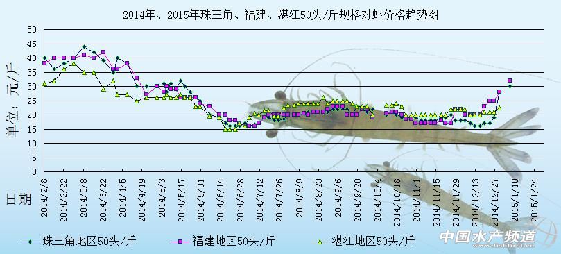 文/中國水產(chǎn)頻道 張靜 中國水產(chǎn)頻道原創(chuàng)報道,下圖是2014年和2015年珠三角地區(qū)、湛江地區(qū)和福建地區(qū)50頭/斤規(guī)格對蝦的價格趨勢圖。整個圖很明顯的就可以區(qū)分為2個不同的部分:2月份到4月份整體的蝦價處于非常高企的狀態(tài);5月份至6月下旬整體蝦價就一直不斷下滑,整體價格比較低迷,7月初蝦價開始出現(xiàn)上漲,到了9月份,因為存塘量和銷售量等問題,整體蝦價一直不斷的浮動,但是升降幅度不算太大;10月國慶假期之后,市場剛性需求明顯減少,對蝦銷售進(jìn)入淡季,各地的蝦價一直處于下行的狀態(tài)。11月中旬,各地進(jìn)入清塘高峰期,各地蝦價因存塘量和銷量不同,蝦價升降不一。11月下旬對蝦越來越少,價格也逐漸穩(wěn)定。12月初各地大降溫,養(yǎng)殖戶出蝦多,市場沖擊致使蝦價出現(xiàn)波動。12月中旬,各地存塘蝦量明顯大減,整體銷售量沒有增多,蝦價趨于平穩(wěn)。12月中下旬,各地的白水塘對蝦存量稀少,市場銷售量有所好轉(zhuǎn),整體蝦價也開始上漲。2015年年初,元旦剛過,各地存塘的蝦非常少,各地蝦價都在飆漲。具體價格趨勢如下: 據(jù)悉,元旦過后,各地的蝦價都在飆漲,特別是中山阜沙地區(qū)的蝦價相比上周最高上漲了7-8元/斤,造成這個現(xiàn)象的主要原因還是各地的存塘蝦少,年底節(jié)假日多,市場的剛性需要也大,所以蝦價才會不斷上漲。也有業(yè)內(nèi)人士預(yù)測,現(xiàn)在各地的蝦價上漲得厲害,塘邊價太高,市場無法接受這樣的價格,后市的蝦價整體漲幅不大。福建地區(qū)現(xiàn)有存塘的對蝦很少,據(jù)福建地區(qū)的蝦中林老板消息,福建霞浦地區(qū)的對蝦存塘量會稍微多一些,對蝦供不應(yīng)求,所以福建地區(qū)很多蝦中都跑到廣東地區(qū)來收購對蝦,例如廣東汕尾地區(qū)。由于大量的蝦中跑到汕尾收購對蝦,所以最近幾天汕尾地區(qū)的蝦價也在持續(xù)上漲,蝦價跟福建地區(qū)基本持平。中山阜沙地區(qū)已經(jīng)有蝦中開始收購棚蝦了,在整個珠三角地區(qū)來估算的話,中山阜沙地區(qū)的蝦價會比其他地區(qū)要高1-2元/斤,中山地區(qū)的蝦中收購對蝦之后都是直接走順德市場或者廣州市場銷售,個別一些規(guī)格小的對蝦才會選擇走外地市場銷售,例如江西地區(qū)的市場。具體價格如下: 【關(guān)鍵字】: 對蝦 對蝦價格 對蝦養(yǎng)殖 中國水產(chǎn)頻道原創(chuàng)報道,轉(zhuǎn)載請說明出處 中國水產(chǎn)頻道 m.fuqitext.com ,違者追究法律責(zé)任, 謝謝合作。 |