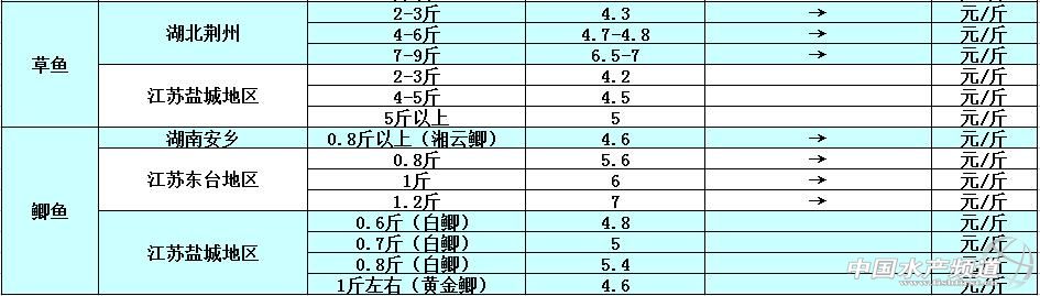 文/中國水產頻道張靜 中國水產頻道原創報道,據悉,近一個多月以來,廣東地區的草魚成魚和苗種價格都是趨于穩中有漲的狀態,加上年底草魚市場的需求量大,整體魚價也在持續上漲,特別是小規格草魚和苗種的價格最為高企,例如中山地區的統鯇價格是5.9-6元/斤,0.1-0.3斤/尾規格的苗種價格甚至漲到了6.3元/斤。兩湖地區本周的魚價跟上周持平,主要還是市場的走量不大,氣溫低、魚價不理想,養殖戶賣魚的意愿也不強。據江蘇鹽城地區的淡水魚收購商消息,最近一段時間鹽城地區的魚價是一塌糊涂,市場銷售量差,魚價處于低迷狀態。預計后市魚價將會持續現狀,整體行情不看好。具體價格如下: 中國水產頻道原創報道,轉載請說明出處 中國水產頻道 m.fuqitext.com ,違者追究法律責任, 謝謝合作。 |