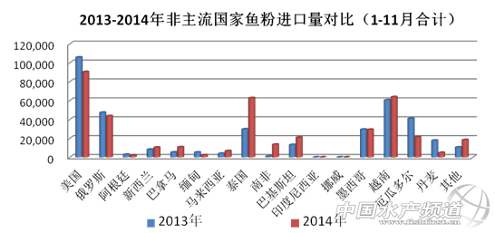 2.6 2013-2014年非主流國(guó)家進(jìn)口魚粉量對(duì)比(1-11月合計(jì))