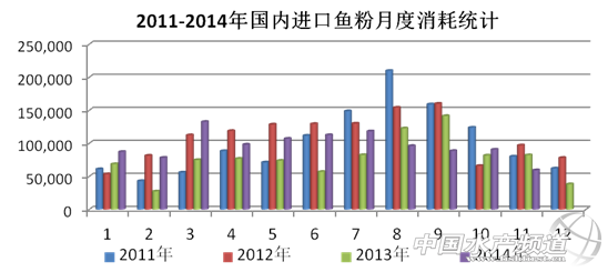2.8 2011-2014 年國(guó)內(nèi)進(jìn)口魚粉月度消耗量統(tǒng)計(jì)