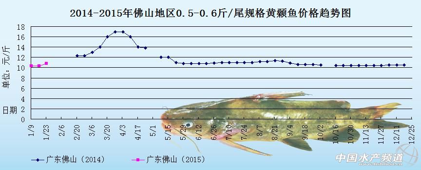文/中國水產頻道 張靜 中國水產頻道原創報道,下圖是2014年、2015年廣東佛山地區0.5-0.6斤/尾規格黃顙魚的價格趨勢圖,由圖中可以看出2015年元旦之后,各地的市場銷售量差,魚價方面也是處于相對平穩的狀態,預計后市整體魚價上漲空間不大。1月中旬開始,黃顙魚的市場需求量有所增加,廣東魚價也稍微上漲,預計后市魚價將會處于穩中有漲的趨勢。1月下旬,因為天氣寒冷,外省地區的魚塘無法刮魚,部分魚中選擇到廣東地區收購黃顙魚,致使廣東地區的黃顙魚走量大大增加,魚價也明顯上漲。具體趨勢如下: 據悉,大寒節氣過后,外省地區的魚塘很難刮魚,部分魚中選擇到廣東地區收購黃顙魚,致使廣東地區的黃顙魚走量大大增加,魚價也明顯上漲。預計天氣如果還是持續寒冷的話,后市魚價還會上漲。具體價格如下: 據廣東地區的魚中陳老板消息,天氣溫度較低,外省地區的魚塘上凍致使刮魚困難,部分外省魚中跑到廣東地區來收購黃顙魚,近期廣東地區的黃顙魚市場走量大大增加,魚價方面也明顯上漲。但是魚價上漲養殖戶的賣魚意愿并不強,現在廣東地區很多養殖戶都抱著觀望的心態在等待,希望魚價高漲之后再出售黃顙魚。按照現在的行情來看,如果天氣持續寒冷的話,外省地區無法出魚,廣東地區的魚價還有得上漲,大規格的黃顙魚價格可以上漲到11.5元/斤;如果天氣回暖的話,外省地區可以出魚的話,廣東地區的魚價將會回落到漲價前的狀態。(以上價格及觀點僅供參考) 【關鍵字】: 黃顙魚 黃顙魚價格 黃顙魚養殖 (中國水產頻道水產價格信息共享Q群:245296163,歡迎提供各種水產品一線價格信息,聯系QQ:139020150) |