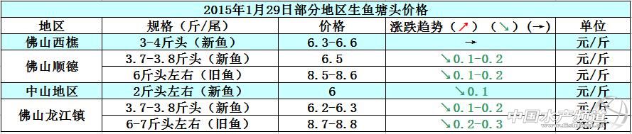 文/中國水產頻道張靜 中國水產頻道原創報道,下圖是2014年、2015年珠三角地區4斤頭生魚的價格趨勢圖,圖中可以看出2015年1月初,各地生魚的市場銷量不理想,整體魚價持續低迷,后市價格不看好。直至1月中旬,生魚的市場銷售出現滯銷現象,預計后市魚價或將下滑。1月下旬,各地市場銷售量差,佛山地區魚價下滑,預計短期內價格難上漲。具體價格趨勢如下: 據悉,廣東地區本周的魚價還是呈現下滑的狀態,運輸到外省市場的生魚銷售量很差,有滯銷現象,市場的整體走量也大大減少。最近幾天外省地區開始降雪,氣溫下降非常厲害,生魚出塘量少。據業內人士了解,廣東中山地區現有存塘的舊魚多數都是以溫棚養殖的,而且量很少,現在還是以新魚為主。天氣變冷之后廣東地區的新魚運輸到外省銷售的話,死亡率很高,所以新魚的價格一直都是出于比較低迷的狀態。也有業內人士預測,如果再過8-10天,外省的市場走量還是持續低迷的話,今年廣東地區的生魚就會有賣不出的現象發生,魚價方面也無法上漲。具體價格如下: 【關鍵字】:生魚 生魚價格 生魚苗 (中國水產頻道水產價格信息共享Q群:245296163,歡迎提供各種水產品一線價格信息,聯系QQ:139020150) |