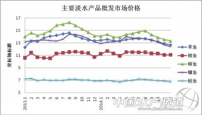 中國(guó)水產(chǎn)頻道報(bào)道,據(jù)對(duì)全國(guó)80家水產(chǎn)品批發(fā)市場(chǎng)成交價(jià)格統(tǒng)計(jì),2014年水產(chǎn)品批發(fā)市場(chǎng)綜合平均價(jià)格21.7元/公斤,同比上漲3.54%。其中,海水產(chǎn)品綜合平均價(jià)格39.39元/公斤,同比上漲3.81%;淡水產(chǎn)品綜合平均價(jià)格14.96元/公斤,同比上漲2.76%。另?yè)?jù)對(duì)可比的33家水產(chǎn)品批發(fā)市場(chǎng)交易情況統(tǒng)計(jì),水產(chǎn)品市場(chǎng)成交量663.41萬(wàn)噸,同比增加1.43%;成交額1246.31億元,同比增加0.24%。 基本特點(diǎn) (一)綜合平均價(jià)格前高后低,7月起價(jià)格持續(xù)下滑 2014年,水產(chǎn)品綜合平均價(jià)格月度間波幅較大。其中,受春節(jié)消費(fèi)拉動(dòng),1月、2月水產(chǎn)品價(jià)格環(huán)比分別上漲5.25%和3.67%,之后經(jīng)歷3月、4月的小幅回落和5月、6月的小幅回升,7月起價(jià)格持續(xù)下跌,9月之后價(jià)格開(kāi)始低于2013年同期。監(jiān)測(cè)的49個(gè)品種中,19個(gè)品種價(jià)格同比上漲,其中,10個(gè)品種漲幅超過(guò)10%;9個(gè)品種價(jià)格同比基本持平;21個(gè)品種價(jià)格同比下跌,其中,6個(gè)品種跌幅超過(guò)10%。 (二)海水產(chǎn)品價(jià)格波動(dòng)明顯,部分品種價(jià)格漲跌幅度較大 2014年,海水產(chǎn)品綜合平均價(jià)格也呈現(xiàn)出前高后低的態(tài)勢(shì),其中,受春節(jié)消費(fèi)拉動(dòng),1月、2月價(jià)格漲幅明顯,環(huán)比分別上漲9.48%和3.73%,達(dá)到全年峰值,之后經(jīng)過(guò)小幅的震蕩調(diào)整,7月開(kāi)始價(jià)格持續(xù)下跌,11月跌至谷底,12月雖略有回升,但自9月之后價(jià)格一直低于上年同期。監(jiān)測(cè)的31個(gè)品種的海水產(chǎn)品中,14個(gè)品種價(jià)格同比上漲,其中,8個(gè)品種價(jià)格漲幅超過(guò)10%;4個(gè)品種價(jià)格同比持平;13個(gè)品種價(jià)格同比下跌,其中,4個(gè)品種跌幅超過(guò)10%(見(jiàn)表1)。 (三)淡水產(chǎn)品價(jià)格走勢(shì)相對(duì)平穩(wěn),9月起價(jià)格持續(xù)下滑運(yùn)行,9月起價(jià)格開(kāi)始下滑,且降幅逐月擴(kuò)大,直到12月環(huán)比才略有回升。 重點(diǎn)監(jiān)測(cè)的18個(gè)品種的淡水產(chǎn)品中,5個(gè)品種價(jià)格同比上漲,其中,2個(gè)品種漲幅超過(guò)10%;5個(gè)品種價(jià)格同比持平;8個(gè)品種價(jià)格同比下跌,其中,2個(gè)品種跌幅超過(guò)10%(見(jiàn)表2)。 重點(diǎn)品種價(jià)格走勢(shì)分析 (一)大宗淡水魚(yú)價(jià)格下行壓力加大 近些年,大宗淡水魚(yú)價(jià)格基本平穩(wěn),沒(méi)有出現(xiàn)特別大的波動(dòng),2014年上半年繼續(xù)保持平穩(wěn)態(tài)勢(shì),但下半年起價(jià)格下行壓力逐漸加大,全年均價(jià)以降為主。其中,除鯉魚(yú)價(jià)格同比上漲2.14%外,鯽魚(yú)、草魚(yú)、鳙魚(yú)、鰱魚(yú)價(jià)格同比分別下降5.74%、2.57%、2.35%和1.57%。 (二)南美白對(duì)蝦價(jià)格整體較高,下半年震蕩調(diào)整 2013年以來(lái),受疫病和災(zāi)害影響,南美白對(duì)蝦養(yǎng)成率較低,市場(chǎng)供應(yīng)量明顯不足,價(jià)格持續(xù)高位運(yùn)行。2014年,EMS等病害依舊困擾著我國(guó)的對(duì)蝦養(yǎng)殖業(yè),年初主產(chǎn)區(qū)廣東、福建等地又遭遇大面積雷暴、冰雹等惡劣天氣,對(duì)蝦養(yǎng)殖雪上加霜,市場(chǎng)貨源持續(xù)偏緊,尤其是春節(jié)期間價(jià)格漲幅明顯。2月當(dāng)月價(jià)格達(dá)到95.25元/公斤,環(huán)比上漲18.6%,同比上漲21.5%。春節(jié)過(guò)后隨著消費(fèi)需求的下降,價(jià)格也略有回落,但仍處于90元/公斤左右的峰值區(qū)間。進(jìn)入5月、6月,第一造蝦陸續(xù)上市,由于擔(dān)心病害導(dǎo)致后續(xù)損失,許多養(yǎng)殖戶選擇提前上市,出蝦規(guī)格偏小、體色稍差,同期又趕上基圍蝦大量上市,因此價(jià)格跌幅較為明顯。7月,多輪臺(tái)風(fēng)登陸我國(guó)南方多個(gè)省份,對(duì)蝦養(yǎng)殖受損,產(chǎn)量下降,價(jià)格止跌回暖。在2013年較高的基數(shù)上,2014年對(duì)蝦平均價(jià)格同比上漲12.39%,達(dá)到74.87元/公斤。 (三)梭子蟹豐收,價(jià)格大幅下跌 據(jù)海洋捕撈動(dòng)態(tài)采集監(jiān)測(cè)到的情況,2014年梭子蟹捕撈量較上年明顯增加,尤其是休漁期結(jié)束后梭子蟹大量起捕上岸,價(jià)格開(kāi)始呈現(xiàn)下行態(tài)勢(shì),9月之后隨著梭子蟹大量集中上市,價(jià)格出現(xiàn)大幅下跌,尤其是在主產(chǎn)地,一些品相較差、規(guī)格較小的梭子蟹價(jià)格每公斤甚至不足10元。批發(fā)市場(chǎng)價(jià)格雖略高于產(chǎn)地,且11月后出現(xiàn)小幅回升,但全年均價(jià)79元/公斤,仍創(chuàng)近4年最低水平,較上年同期下跌36.4%。 (四)鮑魚(yú)價(jià)格復(fù)蘇企穩(wěn) 作為高檔海珍品,鮑魚(yú)主要以高檔餐飲消費(fèi)為主,自中央出臺(tái)“八項(xiàng)規(guī)定”以來(lái),鮑魚(yú)的市場(chǎng)需求明顯下降。同時(shí),隨著“北鮑南養(yǎng)”技術(shù)的普及,鮑魚(yú)繁殖速度加快、生長(zhǎng)周期縮短,市場(chǎng)供應(yīng)量大幅增加。市場(chǎng)供過(guò)于求導(dǎo)致鮑魚(yú)價(jià)格持續(xù)下跌,至2014年6月已跌至谷底,不足上年高位時(shí)的一半。之后,隨著養(yǎng)殖效益的下降,一些養(yǎng)殖戶開(kāi)始退出鮑魚(yú)