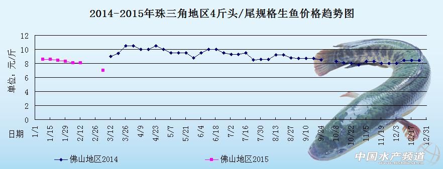 文/中國水產頻道張靜 中國水產頻道原創報道,下圖是2014年、2015年珠三角地區4斤頭生魚的價格趨勢圖,圖中可以看出2015年1月初,各地生魚的市場銷量不理想,整體魚價持續低迷,后市價格不看好。直至1月中旬,生魚的市場銷售出現滯銷現象,預計后市魚價或將下滑。1月下旬,各地市場銷售量差,佛山地區魚價下滑,預計短期內價格難上漲。2月初,外省市場出現滯銷的現象,整體市場走量大大減少,各地魚價也齊齊下滑,預計后市魚價難上漲。2月中旬,生魚銷售行情持續低迷,魚中準備休市過年,預計后市魚價趨于下滑。3月初,各地的生魚市場需求量都很寡淡,以致于廣東地區的魚中都不愿意收魚,所以整體的出魚量很少,魚價行情也是處于低迷的狀態。具體價格趨勢如下: 據悉,春節假期至今,各地的生魚市場需求量都很寡淡,以致于廣東地區的魚中都不愿意收魚,所以整體的出魚量很少,魚價行情也是處于低迷的狀態。預計短期內魚價上漲難度較大,主要是市場剛需較差,F在廣東佛山地區已經開始銷售生魚水花(苗種)了,但是最近一段時間廣東地區都是陰雨天氣,所以購買苗種的人數也并不多,苗價都是在500元/萬尾這個幅度,預計到4月初就會有生魚的標粗苗可以出售了。具體價格行情如下: 【關鍵字】:生魚 生魚價格 生魚苗 。中國水產頻道水產價格信息共享Q群:245296163,歡迎提供各種水產品一線價格信息,聯系QQ:139020150) |