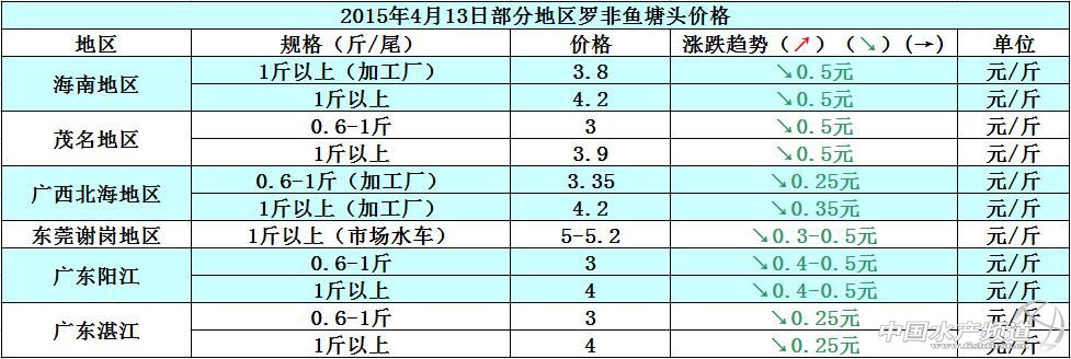 文/中國水產頻道張靜 中國水產頻道原創報道,以下是海南地區、湛江地區、茂名地區2014年和2015年1斤以上/尾規格羅非魚的價格趨勢圖。圖中可以很明顯的看出,2015年的羅非魚價格跟2014年的羅非魚價格相比相差了1元左右/斤,整體價格差異很大。2015年1月初,元旦過后,各地的銷售行情依舊低迷,魚價毫無起色,預計后市魚價漲幅空間不大。1月中下旬,部分地區的魚價稍有上漲,但是行情依舊不理想,整體銷售量還是偏小。2月初,各地合規格的羅非魚存塘量少,年關越來越近,加工廠也陸續放假,預計短期內的魚價還是趨向于平穩,上漲空間不會太大。2月中下旬,因為是年假期間,各地的加工廠還未開始上班,市場銷售量方面也處于相對穩定的狀態,魚價跟放假之前相比整體持平,價格無變化。3月初,春節假期已過,市場需求減淡,魚價持續低位運行,整體價格難上漲。3月中旬,羅非魚加工廠的訂單量少,致使加工廠的收購量縮減,加上內銷市場的需求量少,現在整體魚價趨向下滑,預計短期內各地的魚價上漲難度較大。清明節假期過后,羅非魚外貿出口量還是很少,訂單量毫無起色,至于內銷市場的剛性需求就很淡薄,魚價一直下滑,本周一1斤以上/尾規格的羅非魚價格已經跌破4元/斤,整體行情非常低迷。具體價格趨勢如下: 據悉,清明節假期過后,羅非魚外貿出口量還是很少,訂單量毫無起色,至于內銷市場的剛性需求就很淡薄,魚價一直下滑,本周一1斤以上/尾規格的羅非魚價格已經跌破4元/斤,整體行情非常低迷。具體價格如下: 據海南天之漁的劉總消息,海南地區加工廠的訂單很少,現在1斤以上/尾規格的羅非魚加工廠價格是3.8元/斤,價格已經跌破了4元大關;至于塘邊價就很亂,每個魚中給價都不一樣,價格不統一。羅非魚苗種現在的走勢不夠好,很多苗場的苗價都把持不住,現在的市場行情也不是苗價就能促進得了的,像現在的行情養殖戶的投苗熱情比較淡。 據悉,從4月14日開始,廣西北海加工廠原料羅非魚再度下調,300g-500g:3.2元/斤,達30%加0.05元、40%加0.1元、50%加0.2元、60%加0.25元、70%加0.3元,最高為3.5元。500g-800g-4元/斤。800g以上:達20%扣0.1元、30%扣0.2元、40%以上拒收。A魚:100g-200g:1元,200g-300g:2元,300g-500g:2.1元,500g-800g:3.1元。300g-500g陽臺出肉率低于43%、500g-800g低于43.5%,視情況扣錢。 據東莞地區的魚中黎老板消息,最近羅非魚的市場銷量不理想,魚價也在下滑,現在存塘1.2-1.4斤/尾規格的大魚很多,部分養殖戶為了避免鏈球菌病的影響,近期都在大量賣魚,市場供大于求,魚價開始回落。 據湛江地區的呂先生消息,羅非魚加工廠的價格一再下調,導致塘邊價也在下滑,魚價跌破4元大關。現在粵西地區的養殖戶普遍有2種不同的心態去對待魚價大跌的情況,一種是繼續養魚,準備把羅非魚養到5-6月份再出售;另一種是現在就把合規格的羅非魚賣掉,之后再投苗放養。也有少數的養殖戶準備改養其他品種的水產品,例如草魚和淡水鯧魚。現在淡水鯧魚走市場的價格是4.5-4.8元/斤,價格比較好,養殖戶都想轉養。(以上價格及觀點僅供參考) 【關鍵詞】:羅非魚 羅非魚價格 羅非魚養殖 中國水產頻道原創報道,轉載請說明出處 中國水產頻道 m.fuqitext.com ,違者追究法律責任, 謝謝合作。 |