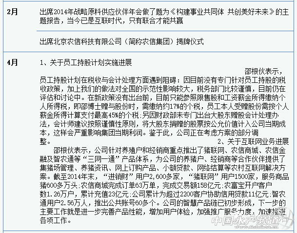 摘要: 薛華:功過是非 交由市場評說。新希望劉永好:身退心不退 2015年找風口、搶風口。邵根伙:不給員工股份的老板不是好老板,不敢要股份的員工不是好員工。陳春花:作為女性很柔軟,相比男性更堅韌。陶一山:做世界級收 ...