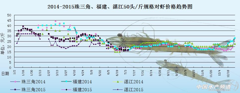 文/中國水產頻道 張靜 中國水產頻道原創報道,下圖是2014年和2015年珠三角地區、湛江地區和福建地區50頭/斤規格對蝦的價格趨勢圖。2015年年初,元旦剛過,各地存塘的蝦非常少,各地蝦價都在飆漲。由圖中可以明顯看出,至3月初為止,2015年的蝦價跟2014年同期的蝦價相比,價格相差10元左右/斤,價格差異幅度較大。4月中旬,各地存塘合規格上市對蝦量大大減少,以致于市場供應量不足,各地蝦價都在慢慢增長中,整體行情趨于上漲。4月中下旬,因為臨近五一假期,很多養殖戶都在待價而沽,準備等到五一假期蝦價高漲才賣蝦,致使對蝦出塘量大大減少,短期內各地蝦價都趨向上漲。五一假期過后,對蝦市場消費進入疲軟狀態,致使蝦價下滑,各地現有存塘合規格上市的對蝦少,市場需求平淡,預計短期內蝦價上漲可能性低,后市行情不被看好。6月初,受到高溫天氣或頻繁降雨天氣的影響,各地對蝦養殖的發病率增加,部分地區的對蝦供應出現短缺,但是市場銷量很不理想,近期各地蝦價都是處于不斷下滑的狀態。6月下旬,端午節假期一過,各地對蝦的市場消費量劇減,整體銷量馬上呈現回落狀態,受此影響,蝦價也跟著不斷下跌,預計短期內各地的蝦價上漲難度大,后市行情不被看好。7月初,各地一造蝦的存塘量都減少了很多,相應的整體對蝦供應量也減少了,雖然市場的銷量沒有增大,但是蝦價方面也有回暖的跡象,如果短期內對蝦供應量保持穩定的話,后市蝦價上漲空間會更大。具體價格趨勢如下: 據悉,7月初,各地一造蝦的存塘量都減少了很多,相應的整體對蝦供應量也減少了,雖然市場的銷量沒有增大,但是蝦價方面也有回暖的跡象,如果短期內對蝦供應量保持穩定的話,后市蝦價上漲空間會更大。具體價格如下: 海南地區的蝦價上漲最為明顯,因為一造蝦的出塘量都在不斷的減少中,加上海南地區的對蝦加工廠一直都有收購冰蝦原料,所以蝦價一直在攀升,養殖戶也不擔心對蝦會賣不出去而造成存塘積壓。現在海南地區30頭/斤以上規格的對蝦很少,目前存塘最多的是40-50頭/斤規格的對蝦。海南地區近期的對蝦出塘走量都很大,現在供貨量又減少了,預計后市蝦價將會繼續上漲。 據珠海斗門地區的蝦中賀老板消息,最近兩天斗門地區對蝦的市場銷量比較低迷,往常周一到周三這幾天市場的銷量相應都會差一些,周末的時候市場銷量是最好的。現在斗門地區存塘合規格上市的對蝦很少,蝦中每天可以收購的量也不多,很多蝦中一天也只是收購了一千幾百斤,上市對蝦減少了,蝦價也在慢慢上漲中,只是上漲的幅度不大,整體蝦價還是以穩定為主。斗門地區的對蝦加工廠也開始收購冰蝦原料了,只是收購價格也很低,50頭/斤規格的對蝦收購去做冰蝦的話塘邊價也只有15元/斤,為此養殖戶賣蝦意愿也不大,多數養殖戶還是選擇賣活蝦給蝦中直接供應到市場銷售。(以上價格及觀點僅供參考) 【關鍵字】: 對蝦 對蝦價格 對蝦養殖 中國水產頻道原創報道,轉載請說明出處 中國水產頻道 m.fuqitext.com ,違者追究法律責任, 謝謝合作。 |