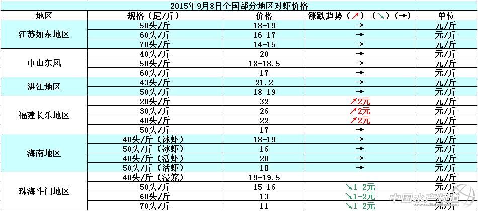 文/中國水產頻道 張靜 中國水產頻道原創報道,下圖是2014年和2015年珠三角地區、湛江地區和福建地區50頭/斤規格對蝦的價格趨勢圖。2015年年初,元旦剛過,各地存塘的蝦非常少,各地蝦價都在飆漲。由圖中可以明顯看出,至4月初為止,2015年的蝦價跟2014年同期的蝦價相比,價格相差10元左右/斤,價格差異幅度較大。 7月中下旬,各地降雨天氣頻繁,加之無節假日活動去推動對蝦的市場消費量,整體市場銷量疲軟,對蝦存塘供應量雖然減少,但是蝦價上漲依舊受到阻礙,預計后市蝦價或將持續現狀,價格上漲空間小。 8月初,因為養殖周期還有高溫天氣及病害方面的影響,各地可以供應上市的對蝦量明顯減少,近期對蝦市場的銷售走量都沒有太大變化,整體蝦價都維持在相對穩定的狀態,短期內蝦價不會有明顯的升降變化。 8月中旬,各地對蝦供應依舊處于青黃不接的狀態,蝦中的實際收購量受此影響也出現時少時多的現象,整體市場走量少,加上對蝦市場的剛性需求不大,致使部分地區的蝦價出現波動。 8月下旬,各大學校又到開學季,學生紛紛回流,加之無節假日活動去推動市場的消費量,近期各地對蝦市場的銷量有所減少,蝦價方面也跟著出現了輕微下調,預計蝦價要等到中秋節前后才會有明顯上漲。 9月初,勝利日假期剛過,各地的對蝦市場銷量就有所回落,相應的價格方面也有所降低,但價格降幅也并不明顯,主要還是對蝦供應量不多,部分地區因為大規格對蝦存塘稀少,蝦中難找貨源,所以大規格對蝦的價格也比較高漲。具體價格趨勢如下: 據悉,最近幾天各地市場的對蝦銷量相比上周有所減少,主要是勝利日假期已過,市民的消費需求也減少了,加之近期的天氣變化比較大,常常高溫過后就出現降雨,部分地區的對蝦應激發病,病蝦上市也造成了一定的市場沖擊,預計短期內各地的蝦價還會有輕微的波動。具體價格如下: 珠海斗門地區本周的蝦價相比上周降低了1-2元/斤,主要原因是勝利日假期過后,市民對對蝦的消費需求不大,最近幾天的市場銷量也明顯減少了,還有一部分原因是近期降雨過多,很多小規格的對蝦都出現應激發病的現象,養殖戶擔心損失不得不把小規格的病蝦賣掉,病蝦上市也造成了一定的市場沖擊,所以蝦價方面也會有所降低。現在斗門地區的蝦中收購對蝦之前都會先去蝦塘看看對蝦的質量如何,質量差的話蝦中都會直接拒收,畢竟市場銷量不理想,質量差的對蝦即使收購價格低,但是到了市場之后賣不出去,蝦中也不愿意去收購質量差的對蝦。 粵西湛江地區存塘合規格上市的對蝦很少,現有存塘很多的都是7-8月份時候投放的蝦苗,但是現階段的養殖情況還是比較理想的,預計蝦苗的成活率有70-80%左右,養殖戶現在都是用2號蝦料去喂養這批對蝦。近期對蝦市場的銷售走量并不多,所以短期內的蝦價行情還是持平為主,預計到了中秋節前后湛江地區的蝦價會有明顯的上漲,因為很多對蝦都達不到上市規格,屆時對蝦供應會較為緊張。 今天剛好是白露節氣,白露一到也意味著各地的天氣漸漸轉涼,晝夜溫差也會變大,白露前后養殖戶需要做好相應的養殖預防工作,及時發現對蝦養殖的病害問題并及時解決,避免對蝦發病造成損失。白露節氣時候的晝夜溫差很大,普遍白天溫度會高達30多度,夜晚降到20多度,晝夜溫差有10多度,此時養殖戶需要密切注意蝦塘底質問題、水質問題以及增氧問題。(以上價格及觀點僅供參考) 【關鍵字】: 對蝦 對蝦價格 對蝦養殖 中國水產頻道原創報道,轉載請說明出處 中國水產頻道 m.fuqitext.com ,違者追究法律責任, 謝謝合作。 |
