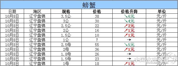 摘要: 2015年10月8日遼寧盤錦河蟹價格行情