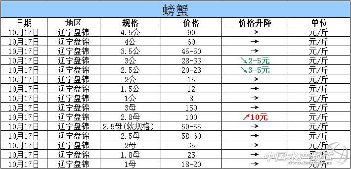 2015年10月17日遼寧盤錦河蟹價格行情