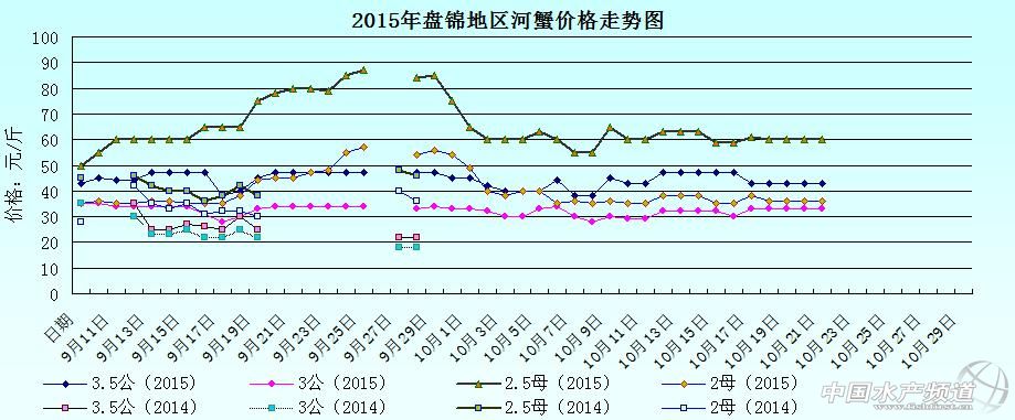 2015年10月22日遼寧盤錦河蟹價格行情