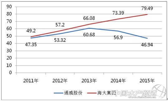 文/ 水產前沿 唐東東 前三季度營業收入:一增一減,雙方差距拉大 前三季度,通威股份的營業收入共110.93億元,較上年同期下滑8.04%;海大集團的營業收入共175.99億元,較上年同期增長8.16%。如圖1所示,海大集團在近五年中,每年前三季度的營業收入都維持增長,整體表現為增幅相對穩定;通威股份則在今年出現首度下滑。可以看到,兩大企業前三季度的營業收入從2011年后逐年拉開差距。 圖1 2011-2015年1-9月份通威股份、海大集團營業收入情況(單位:億元) 7-9月營業收入:通威處于近五年來最低水平 一般而言,第三季度的營業收入約占全年營業收入的45%左右,符合7-9月份作為水產飼料行業的旺季這一現象。單單就第三季度的營業收入來看,通威股份從2013年后出現下滑,今年處于近五年來的最低水平。海大集團仍維持逐年的增長,且相對穩定。 圖2 2011-2015年7-9月份通威股份、海大集團營業收入情況(單位:億元) 盈利能力:均居于近五年來最好的水平前三季度,通威股份歸屬于上市公司股東的凈利潤為3.49億元,約占營業收入的3.15%,凈利潤較上年同期增長6.29%;海大集團歸屬上市公司股東的凈利潤為7.3億元,約占營業收入的4.15%,凈利潤比上年同期增長35.37%。作為水產飼料行業的兩大龍頭企業,凈利潤在營業收入中的平均占比約為3.65%,相當于每100元的收入中,純收入只有3.65元,表明飼料行業的盈利能力并不強。 從圖3可以看出,海大集團的盈利能力普遍高出通威股份,這可能跟海大集團重視高毛利的動保產品銷售、原料采購貿易等有關,而通威股份一直都把動保產品作為服務的輔助工具,并沒有將其作為盈利點。 目前,兩個企業的盈利能力都居于近五年來最好的水平。 圖3 2011-2015年1-9月份通威股份、海大集團的盈利情況 經營狀況:通威優于成本控制,海大優于市場開拓 前三季度中,兩大企業經營活動產生的現金流量凈額出現大幅增長。 其中通威股份現金流量凈額為7.87億元,同比增長146.82%(上期為3.19億元),主要原因為“銷售商品、提供勞務收到的現金”同比減少了8.68億元,當然“購買商品、接受勞務支付的現金”也減少了14.69億元。整體來看,資金流量凈額的大幅增長,表明通威股份在成本控制上有不錯的表現,但市場開拓略顯不足。 海大集團現金流量凈額為7.4億元,同比增長91.68%(上期為3.86億元),主要是因為“銷售商品、提供勞務收到的現金”同比增加了12.43億元,當然“購買商品、接受勞務支付的現金”也增加了6.54億元。整體來看,資金流量凈額的大幅增長,表明海大集團在產品銷售和資金回籠上有不錯的表現。 (文中數據來源于通威股份、海大集團2011年-2015年期間的第三季度報告,數據分析僅代表筆者個人觀點) 【關鍵字】:通威,海大,前三季,報告,水產網 |