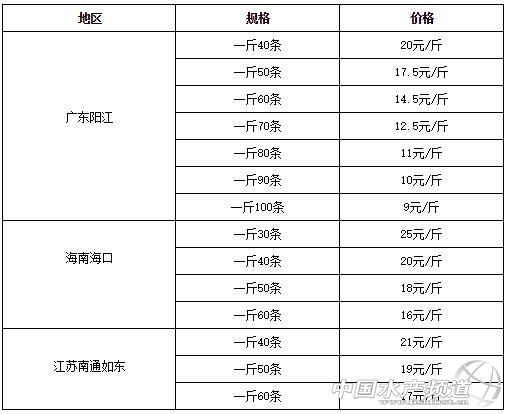 近幾日廣東海南等地南美白對蝦塘口收購價格