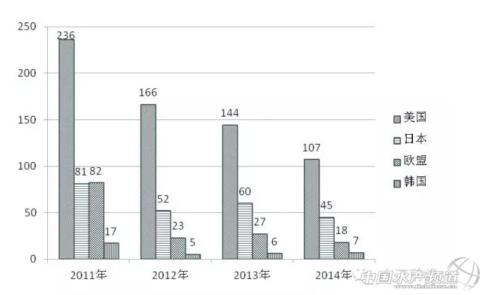 通過對當(dāng)前我國出口水產(chǎn)品存在問題的分析,從加強(qiáng)技術(shù)性貿(mào)易措施保障體系建設(shè)、提升水產(chǎn)業(yè)結(jié)構(gòu)、建立健全水產(chǎn)品質(zhì)量安全監(jiān)控體系、提高出口水產(chǎn)品附加值、促進(jìn)出口市場和品種多元化等方面提出提升我國出口水產(chǎn)品國際競爭力的對策 水產(chǎn)品是我國農(nóng)產(chǎn)品中最具出口競爭力的產(chǎn)品之一,出口額已連續(xù)十五年居我國大宗農(nóng)產(chǎn)品出口首位,但是仍存在一些問題制約著我國水產(chǎn)品出口貿(mào)易的進(jìn)一步發(fā)展,我國水產(chǎn)品要想在未來國際市場上獲得發(fā)展機(jī)遇,需要從依靠資源比較優(yōu)勢轉(zhuǎn)向全面提升水產(chǎn)品的綜合競爭能力上。 一、我國水產(chǎn)品出口貿(mào)易概況 近年來,我國水產(chǎn)品出口貿(mào)易一直保持良好的發(fā)展勢頭,自2002年以來已連續(xù)十四年保持全球第一大水產(chǎn)品出口國地位。2014年我國水產(chǎn)品出口量416.33萬噸、出口額216.98億美元,同比分別增長5.16%和7.08%(圖1)。出口額自2009年突破百億美元大關(guān),到2014年已經(jīng)翻一番,達(dá)216.98億美元,占農(nóng)產(chǎn)品出口總額的30.15%,在我國農(nóng)產(chǎn)品出口創(chuàng)匯中占有舉足輕重的地位。 二、水產(chǎn)品出口貿(mào)易存在的主要問題 1、出口市場相對集中 從出口市場來看,我國水產(chǎn)品出口主要的目的地集中在日本、美國、歐盟、東盟和韓國以及我國的香港和臺灣地區(qū)(圖2)。其中,日、美、歐、韓四大市場的出口額占我國水產(chǎn)品出口總額的比例從2011年的38.02%增長到2014年的48.16%,呈逐年上升趨勢;出口市場的相對集中,導(dǎo)致水產(chǎn)品出口企業(yè)經(jīng)營風(fēng)險率明顯加大,容易受主要出口市場技術(shù)性貿(mào)易措施的限制。 圖2 2011-2014年我國水產(chǎn)品主要出口市場出口額 2、國外技術(shù)性貿(mào)易措施的制約 近年來發(fā)達(dá)國家和地區(qū)對進(jìn)口水產(chǎn)品設(shè)置的技術(shù)標(biāo)準(zhǔn)要求日益嚴(yán)格,檢測項目、技術(shù)標(biāo)準(zhǔn)、準(zhǔn)入注冊、包裝標(biāo)簽等技術(shù)性貿(mào)易措施層出不窮,使我國水產(chǎn)品出口門檻和貿(mào)易成本進(jìn)一步提高。如美國2007年從我國輸美的多批水產(chǎn)品中檢出藥物殘留問題后,對蝦、鯰魚、鰻魚、鯪魚等四類水產(chǎn)品實(shí)施“自動扣留”,至今尚未解除;2009年增加了對硝基呋喃代謝產(chǎn)物殘留的檢測要求;2015年1月以來多次通報從我國輸美的羅非魚產(chǎn)品中檢出磺胺嘧啶和甲氧芐啶藥物,該2種藥物在中國為食用動物中允許使用的藥物,而美國FDA將其列為禁用藥物。美國2011年發(fā)布的《食品安全現(xiàn)代化法案》(FSMA)規(guī)定,輸美食品生產(chǎn)企業(yè)應(yīng)在2012年12月31日前向美食品藥品管理局(FDA)注冊,之后每2年(雙數(shù)年的第四季度)更新注冊一次,逾期未辦理的,將暫停注冊資格,企業(yè)產(chǎn)品將被美國拒絕入境。歐盟要求動物源性食品企業(yè)要符合法規(guī)規(guī)定的條件獲得注冊方可進(jìn)口;2010年1月1日起實(shí)施《預(yù)防、阻止和消除IUU捕撈法規(guī)》《IUU法規(guī)實(shí)施細(xì)則》對輸歐海產(chǎn)品的來源做出嚴(yán)格要求。 通過對中國WTO/TBT-SPS通報咨詢網(wǎng)有關(guān)數(shù)據(jù)的統(tǒng)計整理,我國出口水產(chǎn)品遭遇的技術(shù)性貿(mào)易措施主要來自美、日、歐、韓四大市場,2011-2014年四年間共收到官方通報的不合格信息1076次。美國是我國出口水產(chǎn)品受阻最嚴(yán)重的國家,扣留/召回653次,其次是日本238次,分別占總通報數(shù)的61%和22%。品質(zhì)不合格、農(nóng)獸藥殘留不合格和微生物污染是我國出口水產(chǎn)品被通報的主要原因(圖3)。 圖3 2011-2014年我國水產(chǎn)品遭遇美、日、歐、韓通報數(shù) 3、漁業(yè)環(huán)境污染嚴(yán)重 工業(yè)廢水和生活污水的排放,造成部分地區(qū)水域生態(tài)環(huán)境惡化的趨勢加劇。一方面各種有毒有害物質(zhì)經(jīng)食物鏈進(jìn)入水產(chǎn)動物體內(nèi),通過富集作用在各類水產(chǎn)動物體內(nèi)大量蓄積,然后通過食物鏈嚴(yán)重為害人類的健康和生命安全;另一方面由于養(yǎng)殖環(huán)境污染嚴(yán)重,導(dǎo)致病害增多,用藥量增加,藥效降低,造成養(yǎng)殖環(huán)境污染惡性循環(huán)。此外,過量農(nóng)藥的使用,被雨水沖刷后也匯集到江、河、湖、海中,不但污染了環(huán)境,同時也污染了水生生物。 4、加工技術(shù)水平較低,產(chǎn)品附加值不高 我國水產(chǎn)品加工工藝的發(fā)展與漁業(yè)生產(chǎn)結(jié)構(gòu)性調(diào)整的步伐跟不上世界水產(chǎn)品市場發(fā)展的需要。目前我國水產(chǎn)品加工比例不高,加工技術(shù)水平也較低,即使已形成生產(chǎn)規(guī)模的羅非魚,也僅僅是加工成原條魚、魚片,仍屬粗加工,其附加值微弱。品種結(jié)構(gòu)單一、高附加值產(chǎn)品少,缺乏品牌優(yōu)勢。而國家和企業(yè)對水產(chǎn)品加工的科技開發(fā)和設(shè)備改造投入偏少,對產(chǎn)品加工的基礎(chǔ)理論和應(yīng)用基礎(chǔ)科學(xué)研究的投入也不足。基礎(chǔ)設(shè)施落后、人才短缺已嚴(yán)重影響著加工業(yè)整體水平的提高,制約了