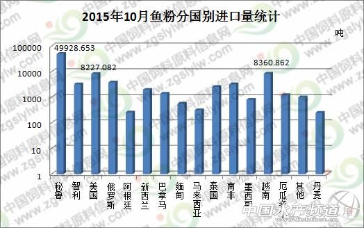 中國(guó)水產(chǎn)頻道報(bào)道, 2015年10月份中國(guó)進(jìn)口魚(yú)粉總量在87138.8噸,進(jìn)口各國(guó)魚(yú)粉平均單價(jià)在1539.1美元/噸。其中在9月份中國(guó)進(jìn)口魚(yú)粉總量在91139噸,進(jìn)口各國(guó)魚(yú)粉平均單價(jià)在1473.02美元/噸,10月份我國(guó)進(jìn)口魚(yú)粉數(shù)量環(huán)比減少4.39%。