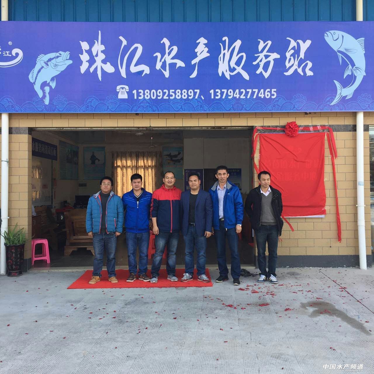 中國水產頻道獨家報道, 12.11日,在三水區蘆苞鎮蘆江水產養殖合作社舉行“蘆苞鎮水產健康養殖服務中心”掛牌儀式。順德區農林漁業局副局長譚超、蘆苞鎮副鎮長鄧啟濤、珠江水產研究所助理研究員廖國禮、珠水生物總經理梁健輝,蘆江水產合作社董事長陳啟行和蘆苞鎮水產健康養殖服務中心負責人唐勇昌等6人為中心正式揭幕掛牌。
