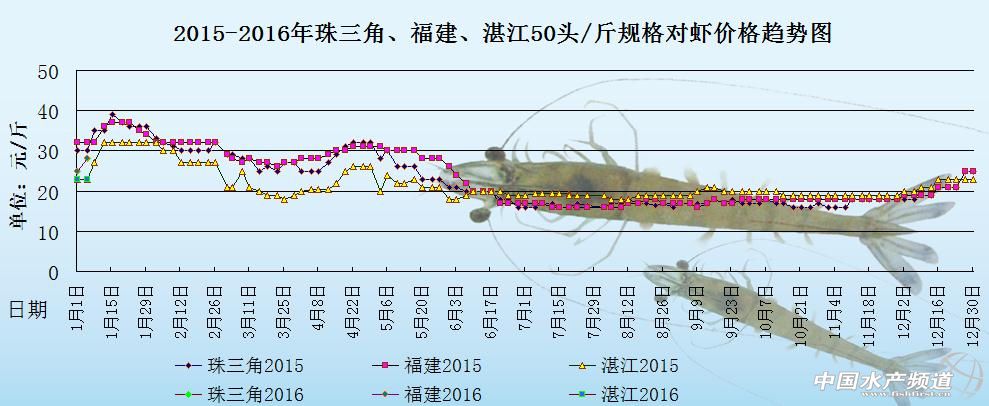 文/中國水產頻道 張靜 中國水產頻道原創報道,下圖是2015年和2016年珠三角地區、湛江地區和福建地區50頭/斤規格對蝦的價格趨勢圖。由圖中可以明顯看出,2016年元旦假期之后珠三角地區和福建地區的蝦價開始上漲,但整體蝦價跟2015年同期相比要低2-4元/斤,湛江地區的蝦價則一直保持穩定。 2015年12月中旬,對蝦養殖進入了一個交接期,多數棚蝦未達上市規格,白水塘對蝦已進入養殖尾聲,對蝦供應量大減,短期內整體蝦價有回暖上漲的跡象。 2015年12月下旬,因為天氣變化的影響,多地棚蝦有應激發病現象出現,整體養殖情況不太理想。現在各地的對蝦供應量大大減少,雖然近期的市場剛需并不穩定,銷量方面也稍有波動,但是整體蝦價還是處于穩中有漲的狀態。 2016年1月初,因有元旦假期去推動市民的消費量,各地的對蝦市場銷量有所增長,現有存塘可供應上市的對蝦很少,加上多數棚蝦規格偏小、部分養殖戶惜售,最近各地的蝦價都在緩步上漲中。具體價格趨勢如下圖: 據悉,因為節日效應的影響,近幾天各地對蝦的市場銷售走量有明顯增長,但各地存塘可供應上市的對蝦量卻日漸減少,加上棚蝦規格偏小、部分養殖戶惜售,整體蝦價趨向上漲。具體價格如下表: 最近幾天,珠三角地區降雨明顯,很多棚蝦都有應激發病的情況出現,養殖戶也開始急著出售病蝦。據珠海地區的蝦中賀老板消息,元旦假期期間珠三角地區的對蝦銷售走量有明顯增長,蝦價方面也穩步上漲,但是假期之后消費需要有所減少,加之天氣變化的影響,病蝦集中上漲,對蝦市場有滯銷現象出現,短期內蝦價上漲空間不大,預計要等病蝦減少之后蝦價才會有大幅增長的可能。 臨近年底,各種節假日和婚慶喜宴等也越來越多,對蝦的市場消費需求也隨之增長,但各地現有可供上市的對蝦存量并不多,而且今年多數地區的棚蝦養殖情況都不理想,預計后市對蝦供應將會日漸短缺,蝦價上漲空間很大。(以上價格及觀點僅供參考) 【關鍵字】: 對蝦 對蝦價格 對蝦養殖 中國水產頻道原創報道,轉載請說明出處 中國水產頻道 m.fuqitext.com ,違者追究法律責任, 謝謝合作。 |