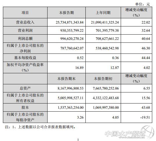 報告期內,公司實現營業收入 2,573,487.13 萬元,同比增長 22.02%; 實現利潤總額為 99,662.03 萬元, 同比增長 40.64%; 實現歸屬于上市公司股東的凈利潤為 78,776.06 萬元, 同比增長 46.30%;基本每股收益 0.52 元,同比增長 44.44%。公司業績持續高速增長來源于公司在戰略、運營、服務等方面的優勢: