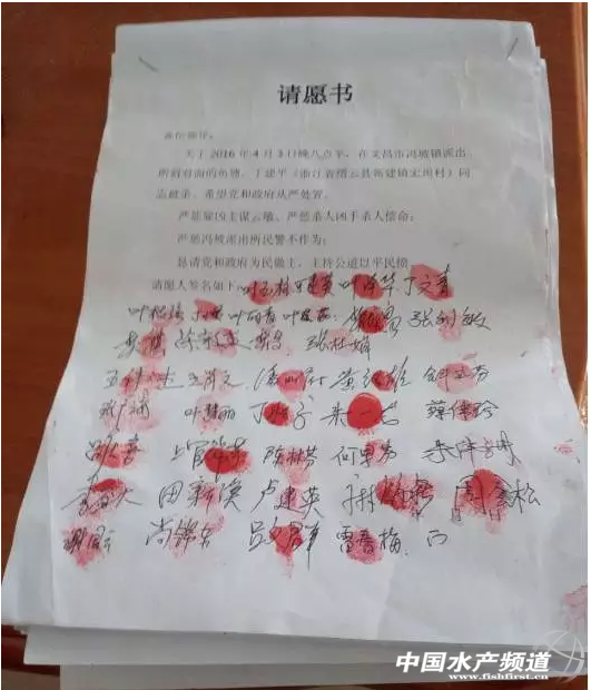 中國水產(chǎn)頻道獨家報道,4月3日晚,海南文昌市馮坡鎮(zhèn)發(fā)出了一起震驚水產(chǎn)界的因魚塘糾紛引發(fā)的傷害致死案件,受害人為來自浙江縉云縣新建鎮(zhèn)的養(yǎng)魚戶丁某平。4月6日,肇事塘主已被警方控制,4月7日,4名犯罪嫌疑人也悉數(shù)歸案。 家鄉(xiāng)領(lǐng)導(dǎo)對受害人家屬進(jìn)行慰問 縉云縣工商聯(lián)主席胡倍佳(中間) 據(jù)中共文昌市抱羅鎮(zhèn)浙仙縉支部委員會代表向中國水產(chǎn)頻道報料,受縉云縣委書記親自指示,昨天,縉云縣工商聯(lián)主席胡倍佳、縉云縣新建鎮(zhèn)政法委書記徐學(xué)軍及縉云縣水利局徐科長,三位領(lǐng)導(dǎo)從浙江來到海南文昌市對受害人家屬進(jìn)行了深切的慰問,同時深入了解案件詳細(xì)發(fā)生經(jīng)過及細(xì)節(jié)問題。今天,幾位領(lǐng)導(dǎo)已到文昌市政府和市公安局進(jìn)行案件溝通。 悲痛的家屬 受害人丁某平的姐姐和內(nèi)弟告訴中國水產(chǎn)頻道小編,丁某平遇害的消息傳到縉云縣后,縣委書記及其他領(lǐng)導(dǎo)非常重視,也很關(guān)心浙江老鄉(xiāng)在外地的安全,此舉使得他們感到欣慰。同時兩受害人家屬表示,目前他們暫不接受一切經(jīng)濟(jì)賠償,只是希望當(dāng)?shù)氐墓布胺刹块T能夠公平公正對待這樁命案,嚴(yán)懲兇手尤其是肇事塘主,如沒有他的唆使,丁某平就不會白白失去生命。兩位受害家屬表示,如果當(dāng)?shù)赜嘘P(guān)部門包庇縱容肇事塘主和兇手,他們將一級級上告,一直告到北京。 據(jù)了解,目前海南有浙江籍水產(chǎn)養(yǎng)殖戶1000多戶,截止今天已有500多戶為受害人發(fā)起請愿書,其他養(yǎng)殖戶因離文昌較遠(yuǎn),但都在陸續(xù)趕來簽字的途中。他們表示,請愿不只是簡單為死者討回公道,告慰他的在天之靈,更是關(guān)系到自己以后的人身安全和合法權(quán)益不受侵害。 對于事態(tài)后續(xù)發(fā)展,我們將繼續(xù)跟蹤,敬請關(guān)注。 【關(guān)鍵字】:海南 文昌 情愿 受害者 水產(chǎn)網(wǎng) |