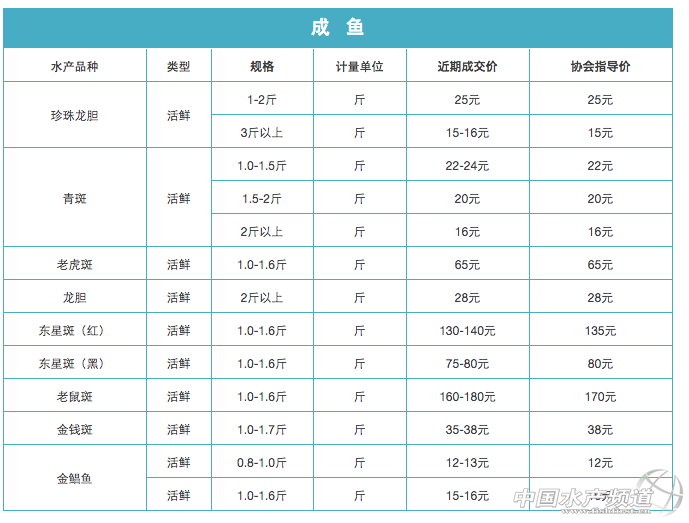 每周四,我們不見不散! 2016年05月11日海水魚類產品指導價 說明:本周珍珠龍膽、青斑、老虎斑、杉虎斑、紅魚、白魚、紅魷魚卵有貨,目前海南島氣溫高,適合繁殖魚卵,故近期各種魚卵價格降低;杉虎斑魚卵是雜交石斑魚新品種,價格較高但合理。繁殖紅魚、白魚、紅尤卵的企業不多,供應價格穩定。 說明:目前市場上珍珠龍膽1-3公分小苗量大,價格降低,建議買苗時要關注魚苗的活力;珍珠龍膽中苗有貨,價格在0.5-0.6元/公分。青斑小苗少量有貨,價格較低;青斑、老虎斑、東星斑中苗少量有貨,但目前養殖戶的目光都集中在珍珠龍膽上,其它中苗難賣,價格相對較低;東星斑小苗養殖需求不大,價格較低,但其魚苗成長較慢,中苗價格合理適中;青斑目前市場認知度不高,小苗及中苗價格都較低。老鼠斑、龍膽苗少有。 說明:本月珍珠龍膽1-1.5斤的商品魚價格稍有降低,相較于往年總體價格仍然偏低,預計珍珠龍膽商品魚還會小漲;目前金鯧魚價格較為穩定。海南養殖量較少的魚如老鼠斑老虎斑、龍膽、東星斑、金錢斑等商品魚價格較為穩定。此成品魚價格為海南養殖場收魚價格,活鮮的市場價會高出5-30元,高檔魚的市場價會高出收購價較多。 海南海水魚產品部分供貨信息 |