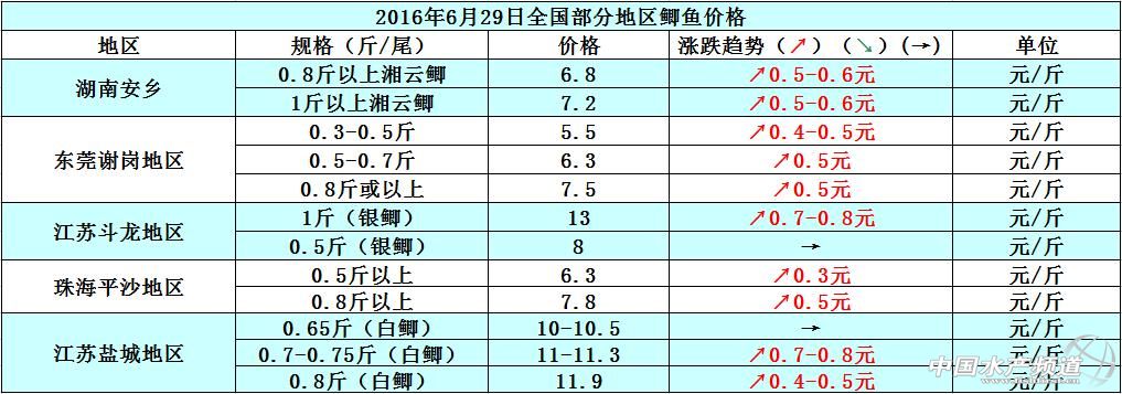 文/圖 中國水產頻道 張靜 中國水產頻道原創報道,廣東地區可供上市的黃顙魚存塘量少,但天氣熱導致黃顙魚的市場剛性需求縮減,現在各地的黃顙魚市場走量有所減少。據業內人士了解,現在廣東地區存塘的黃顙魚多數是在0.3-0.4斤/尾規格,0.4斤以上/尾規格的大魚存量較少,雖說黃顙魚的市場銷售走量不太理想,但是供應量不多,后市魚價還是趨向穩定高企的狀態,短期內魚價不會有太大的波動變化。浙江湖州地區存塘的黃顙魚新魚多數是在0.35斤/尾規格,湖州地區的黃顙魚存塘量充足,相對的魚價方面比廣東地區要低一些。 現在已是農歷的五月下旬,各地的天氣都很熱,而且降雨頻繁,黃顙魚的發病情況也隨之增長,例如廣東地區的黃顙魚開始陸續有“花身”問題出現,魚中都會降低收購價格去收購“花身”的黃顙魚。天氣熱也導致了黃顙魚運輸耗損量增加,為了避免耗損量過大,很多魚中都采取了縮減運輸量的方式,例如之前一輛車的運輸量在10000斤左右,現在的運輸量就減少到了9000斤左右。6月29日各地黃顙魚價格如下: 本周廣東中山地區的魚種及成魚價格相比上周下滑了0.1-0.3元/斤,遼寧遼中地區因為市場銷量的影響,魚價相比上周下滑了0.1元/斤,廣東珠海地區、東莞謝崗地區及湖南安鄉等地區的草魚價格相比上周幾乎持平,整體價格無明顯波動。6月29日各地草魚價格如下: 因為供不應求的原因,本周各地的鯽魚價格一路飆漲,特別是江蘇斗龍地區1斤/尾規格的銀鯽塘邊價已經漲到13元/斤,價格非常高企。各地鯽魚存塘量多數以小規格為主,1斤或1斤以上/尾規格的鯽魚存塘量非常稀少,加之天氣熱之后市民對鯽魚的消費需求是日漸增加,預計后市鯽魚價格將會趨向穩中有漲,但是短期內價格漲幅不會太大。6月29日各地鯽魚價格如下: 【關鍵字】:黃顙魚 草魚 鯽魚 水產養殖 |