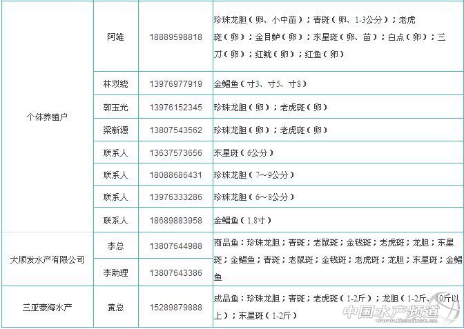 文/圖海南省南海魚類種苗協會 最新成交價和指導價一手掌握 每周四,我們不見不散! 說明:本周龍膽、珍珠龍膽、老虎斑、白魚等魚卵有貨,目前海南島氣溫高,適合繁殖魚卵,故近期各種魚卵價格降低;老鼠斑、東星斑、金鯧魚等已過繁殖期,故沒有報價;繁殖龍膽的養殖戶很少,故龍膽卵價格比較高;繁殖紅魚、白魚、紅尤卵的企業不多,供應價格穩定。 說明:因天氣原因,高溫較高且多暴雨,目前市場上珍珠龍膽1-3公分小苗量少,價格稍有升高,建議買苗時要關注魚苗的活力;珍珠龍膽中苗有貨,價格在0.5-0.6元/公分。青斑小苗少量有貨,價格較低;青斑、老虎斑、東星斑中苗少量有貨,但目前養殖戶的目光都集中在珍珠龍膽上,其它中苗難賣,價格相對較低;東星斑小苗養殖需求不大,價格較低,但其魚苗成長較慢,中苗價格合理適中;青斑目前市場認知度不高,小苗及中苗價格都較低。老鼠斑、龍膽苗少有。 說明:本月珍珠龍膽1-1.5斤的商品魚價格平穩,相較于往年總體價格仍然偏低,預計珍珠龍膽商品魚價格還會小漲;目前金鯧魚價格較為穩定。海南養殖量較少的魚如老鼠斑老虎斑、龍膽、東星斑、金錢斑等商品魚價格較為穩定。此成品魚價格為海南養殖場收魚價格,活鮮的市場價會高出5-30元,高檔魚的市場價會高出收購價較多。 海南海水魚產品部分供貨信息 |