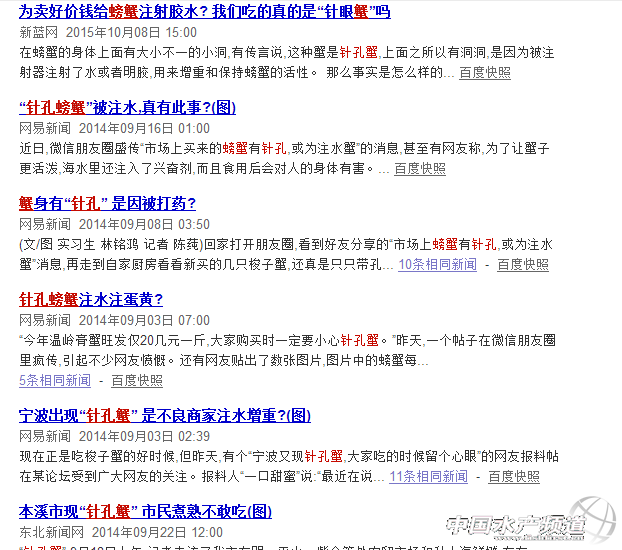 鮮美的蟹黃真能這樣被偽造出來嗎?記者就此進行了一番調查。 我們先來看看給螃蟹注射液體的結果會如何? 2014年,春城晚報刊發了一則報道,就螃蟹注液問題進行了實驗。記者買回了幾只活的大閘蟹做實驗,嘗試用5毫升和10毫升的注射器往一只重約80克的螃蟹體內注射清水,原先還“張牙舞爪”的螃蟹,5分鐘后即死去。稱重顯示,這只螃蟹,注水后,增重僅3克左右。 對此,云南農業大學食品技術學院教授陳滔的解釋是,往螃蟹體內注射液體,螃蟹的臟器滲透壓會發生變化,進而導致各個臟器失水萎縮或者吸水膨脹而死亡。這個過程相當迅速,短時間賣不出去就得砸在手里,螃蟹賣家會虧本。 無獨有偶,法制晚報近日也進行了一個同類實驗,結果同樣說明:在螃蟹體內注入液體,會導致螃蟹很快死亡。所以,市場上不會存在注水的活螃蟹。請看下圖: 那么,網傳視頻中的中年女子為啥要給螃蟹注入橙色液體呢?注射完液體的螃蟹去了哪里呢? 我們再來仔細看這則視頻,不難發現一些端倪。背景音是廚房切菜的聲音,地上有各種蔬菜的殘葉,如蘿卜,邊上還有桌椅;注射用的黃色液體用碗裝著,形似調好的調料;打針的位置,正好是蟹黃的部位,打好針就將螃蟹扔到一邊。 熟悉蘇浙一帶農村風俗習慣的讀者,從這些細節不難判斷出:這可能是一個農村集體聚餐燒菜的地方,視頻中的人正在為當天的酒席做菜品準備。根據溫州辟謠的公開報道顯示,該視頻應為江浙的一道名菜“干蒸蝤蠓”的制作過程。 什么是蝤蠓?蝤蠓一般指鋸緣青蟹,盛產于溫暖的淺海中,主要分布在中國浙江、廣東、廣西、福建和臺灣的沿海等地,蘇浙一帶尤多。 蝤蠓圖片來源:網絡 蘇浙沿海農村紅白喜事聚餐,蝤蠓是必上的主菜。以前是讓蝤蠓浸泡在黃酒中,讓蝤蠓自行吸收到體內,蒸熟就能入味。而現在為了讓這個流程加速,廚師會讓幫廚們直接加點蛋黃兌黃酒(佐料)注射到螃蟹身體里,這樣蒸起來的蝤蠓蟹黃不僅飽滿好看,而且香甜可口。 至此,這條網上熱傳視頻的真相終于揭開了。 螃蟹注水的傳言早已有之,連P仔都快相信了。事實證明,活螃蟹一注水就變成了死螃蟹,商家要虧老本了。P仔想說,在互聯網時代,眼見也未必為實。就如說話的語境一樣,網上流傳的小視頻,如果不知背景、不知前因后果,也是有可能會誤解曲解的。 深受謠言其害的水產品 如下小編整理部分關于水產品的謠言,謠言不會自己消除,沒有人進行辟謠只會越傳越烈,傳到一定程度,就將會危害整個行業的正常發展。多寶魚就是一個例子,謠言已經嚴重危害到多寶魚行業的發展。當“毒魚”成為多寶魚的標簽時,不會有消費者回拿自己的健康開玩笑。當謠言能逼死一個水產品,就也能逼死其他水產品。我們需要對謠言說不! ◾暴雨致魚污染,不能吃?湖北省水產局:百分百謠言 “暴雨致魚污染,大家最近千萬別吃魚!”昨天,這條聳人聽聞的消息在一些市民間口口相傳,引發擔憂。魚真的被污染,不能吃嗎?對此,湖北省水產局明確表示,這則消息百分百是謠言。昨天,記者看到微信群里,有網友爆料說:“連日來武漢暴雨,導致不少魚塘里的魚被污染,最近大家千萬別買魚。”“不知道真假,希望能核實清楚,以免引起恐慌。”爆料者希望晨報“謠言粉碎機”幫忙辨明真假。昨天,記者走訪武漢生鮮市場,魚市并沒有受該消息影響。魚真的被污染了嗎?對此,湖北省水產局辦公室工作人員明確表示,該消息百分百系謠言,請市民不用恐慌,大家可以放心食用。 武漢晨報訊(記者謝冰林)“暴雨致魚污染,大家最近千萬別吃魚!”昨天,這條聳人聽聞的消息在一些市民間口口相傳,引發擔憂。魚真的被污染,不能吃嗎?對此,湖北省水產局明確表示,這則消息百分百是謠言。昨天,記者看到微信群里,有網友爆料說:“連日來武漢暴雨,導致不少魚塘里的魚被污染,最近大家千萬別買魚。” “不知道真假,希望能核實清楚,以免引起恐慌。”爆料者希望晨報“謠言粉碎機”幫忙辨明真假。昨天,記者走訪武漢生鮮市場,魚市并沒有受該消息影響。 魚真的被污染了嗎?對此,湖北省水產局辦公室工作人員明確表示,該消息百分百系謠言,請市民不用恐慌,大家可以放心食用。 ◾黃鱔用避孕藥增肥,謠言! 網上一直流傳這樣的說法:“為了讓鱔魚快速長大,農戶對鱔魚采取了絕育措施以達到使其專心長膘的效果,絕育的手段就是用避孕藥喂養鱔魚。”上海海洋大學食品學院水產品加工及貯藏工程系教授陳舜勝指出,黃鱔用避孕藥增肥是偽科學,純屬謠言。黃鱔是一種罕見的具有性逆轉特性的魚類,幼齡時期全是雌性,產卵后逐步過渡為雄性,有部分黃鱔不會轉性。由于雌鱔要在繁殖環節消耗大量體能,生長速度受到一定影響,雄鱔少了這一環節的耗能,生長速度相對較快,體型上也比雌鱔偏大。 ◾大閘蟹為長膏、催肥,用避孕藥,謠言! 近年來,有關大閘蟹的“緋聞”就沒停過。一則名為“養殖戶為催蟹快長投放避孕藥”的文章更在各大網站傳播。事實上,大閘蟹屬于甲殼類水產動物,在海水里出生、淡水里成長,靠脫殼慢慢長大。每年10月份左右,在鹽水的刺激下,雌雄大閘蟹才會抱在一起交配,它們在淡水湖里不會交配。不僅如此,養蟹人也會在大閘蟹成熟前按性別分裝在暫養箱里。螃蟹一生需要脫殼19~21次,才能長大。大量實驗顯示,使用避孕藥或激素,打亂了螃蟹的脫殼秩序,導致“難產”而大