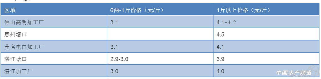 大部分加工廠表示,8、9月份,羅非魚價仍有上漲趨勢,但價格應該不會高于4.5元/斤,因為價格太高,市場難以接受。投苗熱情目前也比較平淡,這段時間溫度比較高,沒有設備的魚苗廠產苗量也比較低,養殖戶也不敢投苗。養殖戶們都持觀望態度。一般情況下,秋苗的投苗量都會比春苗少,今年春苗的投苗量低,或者秋苗會有所提高,不過,這主要是受到接下來魚價以及產苗量(高溫期產苗量低,越往后溫度越低,產苗量也會大受影響)的影響。 而鏈球菌病也會在農歷的8月15日(9月15日)左右得到控制。遺憾的是,2015年發生的磺胺事件并未給所有的養殖戶敲響警鐘。據多個加工廠反映,雖然今年養殖戶的禁用違禁藥物的意識有所加強,但藥殘現象還是時有發生。某加工廠告誡稱:“如果養殖戶不注意藥殘問題,受傷的是這個行業。很多其他國家也在養殖羅非魚,中國羅非魚為什么比其他國家便宜也是受到中國羅非魚在國際上的形象的影響,要想魚價上漲,首先就得維護好這個行業。” 本周(8.1-8.6)魚價 廣東 廣西 海南 上周(7.25-7.30)魚價 廣東 廣西 海南 |