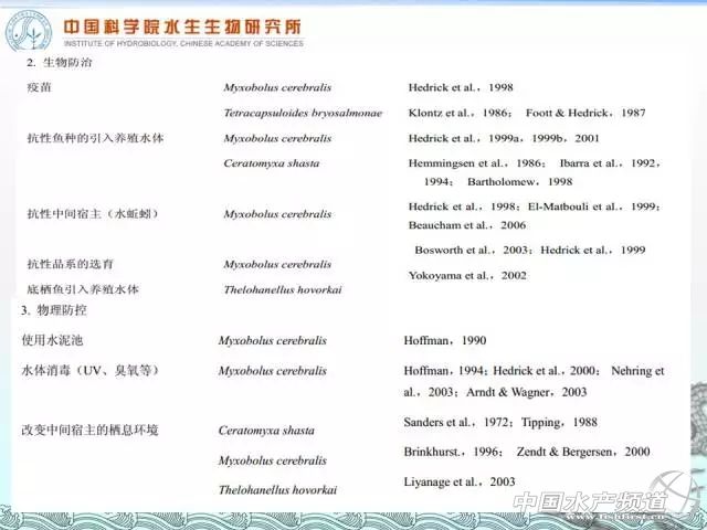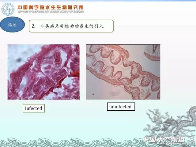 中國水產頻道周雙艷整理,原作者:中國科學院水生生物研究所章晉勇博士 水產前沿微信課堂升級了 在這里還要告訴大家一個好消息:水產前沿微信課堂升級了! 第一是你隨時隨地都可以進直播間看講課的內容,不用擔心會錯過進去之前的內容; 第二是它沒有人數限制,只要你想聽就都沒有問題; 第三當你聽到嘉賓講得好時可以隨時給嘉賓打賞。 中國水產頻道報道,7月29日晚上19:30-21:30,中國科學院水生生物研究所章晉勇博士做客中國水產頻道,將他在孢子蟲方面多年的經驗跟大家進行了分享。章博士分享的內容包括孢子蟲基礎生物學簡介、研究歷史、寄主、生活史、感染與傳播機制、科學防控策略、當前常見的粘孢子蟲簡單介紹以及關于當下和未來寄生蟲病害防控的幾點思考。小編節選一部分關于孢子蟲防控和防控的幾點思考的內容分享給大家,看看自己的防控水生動物孢子蟲的過程中是否也存在著一些誤區和錯誤觀念。對其他部分感興趣的朋友們請點擊【閱讀原文】自行學習吧!全文一共有11000多字,建議大家收藏起來慢慢學習。 孢子蟲的防控策略 1、科學防控的基礎 防控的基礎是三圈理論,即病原(孢子蟲)、宿主(水蚯蚓、魚)和養殖的水環境。 防控首先要找到它的薄弱環節,①能否能夠控制池塘里面的水蚯蚓,②找到水蚯蚓什么時候釋放放射孢子蟲,也就是感染源,然后把這個兩個直接把它掐斷,放射孢子接觸不到魚就不會發生感染了。 2、如何從寄主方面進行防控呢? 粘孢子蟲有脊椎動物宿主和無脊椎動物的宿主,從防控的角度講的話,怎么樣從脊椎動物和無脊椎動物宿主進行防控呢? 從脊椎動物宿主來講: ①培養抗粘孢子蟲的宿主。例如鯽魚的中國3號,當時中國3號能夠抗腹孢子(吳李碘泡蟲)。這個工作確實是在同一個池塘里面經過驗證的(沒有在感染平臺上驗證),同一池塘里面放了高背鯽和中國3號,發現高背鯽的感染率很高,中國3號的感染率非常低,這可以說明中科3號能夠在一定程度上抵抗腹孢子蟲,但不是100%的,因為任何的抗性品種如果感染源的豐度高非常了也是抵抗不住的。 ②混養,輪養。一些非特異性宿主會消降池塘里面感染源放射孢子蟲的豐度。如果是輪養的話,休耕是最好的方式。因為休耕,池塘里面可能就不會有水蚯蚓,即使有水蚯蚓它也會把池塘里面遺留的粘孢子蟲吃光,如果找不到易感宿主,那么它的世代就完成不下去,自然也就滅亡了。 ③免疫增強劑。我沒有做過具體的實驗,我不知道到底有沒有效果,但是我估計是有效果的,因為免疫增強劑是提高機體免疫力的。如果真是做了這方面實驗,推薦了這個東西,我建議在當下養殖條件下還是用一些,因為也不是太貴,,既可以抑制寄生蟲,又可以提高機體的免疫力。 從無脊椎動物宿主來講: ①底質的改造。從研究的角度來講,養殖戶不可能進行池塘底泥的改造,我們都知道養殖戶池塘的底泥都不會去清理的,更不用說底泥的改造了。但對培育觀賞魚的,底泥改造還是可行的。如果是沙質的底,蘇氏尾鰓蚓這種比較大的水蚯蚓在沙子里面容易斷而死亡。 ②用藥物殺滅。比如用殺釘螺的藥去殺水蚯蚓,清塘的時候生石灰和二氧化氯是有用的。 ③生物操控。蝦蟹能夠吃掉水蚯蚓,也是可以用的。我不建議殺水蚯蚓,因為它是池塘生態系統的一部分,對生態系統的穩定性是有用的,如果你能夠把一些抗孢子蟲的物種放進去,一來可以預防發病,二來能夠更好維持池塘生態的穩定性。 ④抗病品系的培育。這點可以查閱桂建芳院士的相關研究。 3、如何從病原的層面進行防控呢? ①不同毒力株對宿主的致病力差異 研究發現不同的水蚯蚓有不同的基因型,不同的基因型抗某種孢子蟲的能力不同。同一種的孢子蟲對不同地域來源的鯽魚的毒力也不一樣。這是我們國家還沒發現,因為我調查了十幾個省份的喉孢子蟲,發現我們用的標記是沒有差異的,也就是說是沒有毒力差異的。美國人在鮭鱒魚里面發現不同的基因型孢子蟲對鮭鱒的毒力是不一樣的,致死率也不一樣。 ②非易感無脊椎動物宿主的引入 不同基因型的水蚯蚓對粘孢子蟲的抵抗力也是不一樣的,左邊有放射孢子蟲,右邊是加了抗性的水蚯蚓,它對不同樣的粘孢子蟲抵抗力是不一樣的。 ③苗種的嚴格檢驗檢疫,SPF苗種的培育 苗種的檢驗檢疫是非常重要的,我們國家早就規定了苗種的跨境檢驗檢疫是必須要做的,但是沒有人去做這個事。一個很重要的防控方法就是要做SPF標苗。 我們在蘇北做了這么多年,有些塘口確實是一條水蚯蚓都沒有,但它為什么得病呢?有兩個原因:第一個原因水源傳播,從別的塘口帶來的。第二個原因苗種帶來的,因為喉孢子、腹孢子傳播時間非常的長。當然跟溫度也有關系,溫度不一樣,發育的快慢也就不一樣。 所以我大致分了一下,有水蚯蚓的塘口叫做內源性塘口,能夠維持整個生活史的周期。水源和苗種帶來的感染源的塘口叫做外源性塘口。 SPF苗種對外源性塘口是非常非常有效的防治方法,甚至一點藥物都不用。如果你是外源性塘口,喉孢子蟲病你一點藥物都可以不用,在水源口加上一個沙濾或者UA消毒,就可以用來控制水源的傳播。 ④藥物滅活感染源或阻斷成熟孢子發育 如果水里面的水蚯蚓和放射孢子蟲沒有控制住,那么這個時候我們就只能用藥物阻斷感染,然后水里面的放射性孢子蟲我們現在有一種藥物(當然現