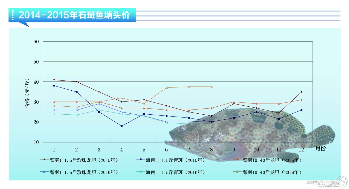 成魚市場方面,8月石斑魚市場價格持續低迷。海南塘頭青斑1-1.5斤/尾規格魚報價18-20元/斤,珍珠龍膽1-1.5斤/尾規格魚報價20-21元/斤,1.5斤/尾以上規格17-18元/斤,8斤/尾以上規格報價23-25元/斤,基本同上月持平,較2015年同期價格降低20%。福建地區青斑標魚(1.2-1.6斤/尾左右)價格為23-24元/斤,1.2-1.6斤/尾規格珍珠龍膽價格為24-25元/斤,同上月價格微落1-2元/斤,比2015年同期價格約低20%。 目前的市場價格已讓接近8成的珍珠龍膽養殖戶虧本,巨大的存塘量,低迷的消費市場,讓石斑魚養殖戶對后市持悲觀態度,而青斑價格基本與珍珠龍膽價格持平,由于青斑苗種成本低、成活率高,目前的市場價格反而使青斑養殖戶仍然有一定的利潤。 苗種方面,成魚市場持續大半年低迷的價格令養殖戶對珍珠龍膽石斑魚的養殖信心嚴重缺失,投苗量和苗種價格都創歷史新低。07-08篩珍珠苗報價1.3-1.4元/尾,珍珠龍膽中苗報價不到0.3元/公分,比7月價格下跌;福建市場本地珍珠龍膽苗報價約0.45元/公分,青斑苗報價不到0.2元/公分。 還有1個多月的時間就到國慶節和中秋節的消費旺季了,石斑魚養殖戶期盼節日能夠有所拉動魚價。經過大半年的行情低迷,養殖戶的資金情況格外緊張,屆時養殖者都會選擇大量出魚,但就目前的供需市場和石斑魚價格走勢來看,節日對魚價的拉動效果有限,養殖戶應理性看待目前的石斑魚養殖市場,合理規劃養殖,適時出魚,減少風險。 【關鍵字】:石斑魚 石斑魚價格 石斑魚行情 中國水產網 |
