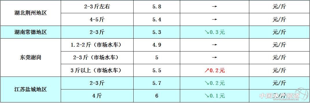 文/圖 中國水產頻道 張靜 中國水產頻道原創報道,本周廣東地區草魚價格相比上周基本持平,價格沒有太大變化,整體趨向穩中有漲,小規格草魚苗種供應增多,預計后市小規格魚苗的價格會稍有下滑。兩湖個別地區以及江蘇鹽城地區的魚價相比上周下滑了0.1-0.3元/斤,主要是銷量變差了,因為黃渤海地區的伏季休漁期結束了,各種海鮮產品都開始大量上市,對此造成了一定的市場沖擊,養殖淡水魚的價格也會有所下滑,但整體價格不會下滑太厲害,畢竟現在各地的草魚存塘量也日漸減少。9月6日各地草魚價格行情如下: 本周珠三角地區和江蘇鹽城地區的鯽魚價格跟上周相比持平,整體價格無明顯波動變化;湖南安鄉地區則因市場銷售走量的直接影響,導致魚價相比上周下滑了0.3元/斤。鯽魚的市場剛需方面在不斷增長,預計后市鯽魚整體價格將會趨向穩中有漲。9月6日各地鯽魚價格行情如下: 9月6日各地花白鰱價格如下: 【關鍵字】: 草魚 鯽魚 花白鰱 水產養殖 中國水產頻道原創報道,轉載請說明出處 中國水產頻道 m.fuqitext.com ,違者追究法律責任, 謝謝合作。 |