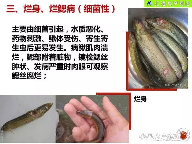 | 文/ 中國水產頻道 周雙艷整理,原作者:中山橫欄匯海水產藥店負責人 羅懷遠 9月2日晚20:00中山橫欄匯海水產藥店負責人羅懷遠做客中國水產頻道,同大家進行了《臺灣泥鰍常見病害防治》交流。 微課嘉賓 羅懷遠:從事水產一線技術服務工作10多年,熟悉南美白對蝦、泥鰍等病害的診治,現有4家連鎖店,為中山橫欄匯海水產藥店負責人。 主要分享要點 1、氣泡病的主要癥狀和防治方法 2、紅嘴、紅點病、紅鰭、爆頭病(出血病)的原因、主要癥狀和防治方法 3、爛身、爛鰓病(細菌性)的原因、主要癥狀和防治方法 4、水霉病的原因、主要癥狀和防治方法 5、寄生蟲主要癥狀和防治方法 6、其它(氨氮、亞硝酸鹽偏高和藍藻爆發、肝腫大等防治方法) 一、泥鰍的基本認識 在講泥鰍病害之前,首先給大家介紹泥鰍的基本認識。 ①好多人認為泥鰍是沒有鱗的,其實泥鰍是有鱗的,鱗片比較細小,埋在皮下,所以一般都感覺不到; ②泥鰍屬于底棲魚類,以動物性食物為主的雜食性魚類。溫水性魚類,生長水溫為13-30℃,最適水溫23-28 ℃,水溫低于10 ℃或高于30 ℃時停止攝食;泥鰍和其它魚類不同,具有“夏眠”、“冬眠”特征; ③耐低氧能力遠勝于其他魚類;除了用鰓呼吸外,腸和皮膚也有呼吸作用,正常來講,泥鰍一般都不怕缺氧,運輸當中,適合長途運輸; ④幼魚期喜吃動物性餌料,成魚期喜吃植物性餌料,根據這個特性,大家可以在幼魚期可以搭配蛋白較高的餌料,但是到了成魚期可以投喂低蛋白的餌料或者直接拌喂米糠,一個禮拜喂上1天或者幾餐; ⑤特別貪食,所以喂料不宜過多;幼魚期日投喂量5-8%,成魚期5%。 有了對泥鰍的基本認識,可能能夠更好的管理和養好泥鰍。 二、臺灣泥鰍常見病害防治 下面講講最主要的病害,根據自己的經驗將常見的病害羅列了出來,為了通俗易懂,有些地方直接用癥狀命名病害。一共六點 1、氣泡病 主要癥狀: 氣泡病在對蝦上面有些熟悉,在魚上面更多見,輕微發病的時候用肉眼很難觀察到,但是通過顯微鏡可以看到鰓絲和鰭部有氣泡,嚴重時泥鰍腸中充氣浮于水面,肚皮鼓起。對苗種危害最大,這也是泥鰍“開花”成活率低的主要原因。 這張圖片水色明顯偏濃,我認為這種水的話是不適合放苗和開花。這種水色如果想放苗或者開花的話建議先進行處理,一般用腐殖酸鈉淡化,隔一天再補充有益菌(乳酸菌、EM菌),根據水色進行調整。有些EM菌可能肥水比較重一點,大家在選購的時候要了解產品的特點。 防治方法: ①控制水濃,輕微偏濃可用腐植酸鈉,嚴重時在放苗前適量使用硫酸銅或者殘留比較少的殺藻的產品抑制藻類的生長,不讓藻類繁殖那么旺盛,之后通過調水,補充有益菌保持穩定; ②放苗后發病時立即加入清水或從魚塘加一些浮游動物比較多的水體或者泥漿水先緩解,第二天再按①處理預防; ③氣泡病發病之后,容易繼發感染其它的病癥,所以建議控制后用一些消毒劑如高碘酸鈉或者別的碘制劑去預防繼發感染。由于它來的比較快,所以控制得不好的話很容易引起其它的病。所以一定要預防繼發性感染的病菌。 附:泥鰍開花關鍵點 泥鰍“開花”為什么成活率低?會操作的話有些達到3-4成以上,不會操作或者經驗不是很成熟的養殖戶的成活率可能1成都不到,所以在這里講一下泥鰍開花的關鍵點。 ①清水放苗,透明度50公分以上;要清水放苗,很多養殖戶把水調得很濃,pH很高,很容易患氣泡病,所以在這里我建議清水放苗,透明度在50公分以上; ②放苗后要保持營養充足均衡,好多都是買低端料,我覺得可能這點不是很好; ③補充有益菌,保持水體穩定7天以上,這樣才能保證泥鰍開花的成活率較高。 2、紅嘴、紅點病、紅鰭、爆頭病(出血病) 主要癥狀: 嘴、鰓蓋紅腫、體表有許多紅點、各個鰭部及肛門發紅,嚴重出現肌肉潰爛、鰭條腐蝕等現象,不攝食,直至死亡。 主要原因: ①水質變化大,發黑、水濃、青綠色且pH值波動大的塘比較多見; ②天氣變化大,例如突然下大雨或者臺風天氣,導致返底,水變; ③患過氣泡病,寄生蟲病后繼發感染細菌,刮塘、分魚或者運輸過程中導致魚體受傷; ④用過刺激性大的藥物或用藥量嚴重超標導致。 第一個是水色發黑,第二、三主要是爆頭,這段時間比較多發的。 預防方法: 首先找到原因,找到原因后才能清楚更好的控制和預防。一般建議: ①堅持定期用消毒的(如高碘酸鈉)+中藥(穿心蓮、烏梅、大黃、草本精華素等)”消毒預防;水質如果太差的塘建議適當換水,pH高務必降低。因為泥鰍是高密度養殖,通過藥物調整的話還是比較慢,所以水源好的話還是先換水最好了; ②通過顯微鏡觀察魚是否有蟲,如果有蟲的話要先有針對性殺蟲,然后再按照1的方法進行處理; ③堅持定期用氧化性的改底產品進行改底; ④如果出現大量死亡的塘或加水后的塘立即用“病毒靈(高碘酸鈉)+出血止(穿心蓮、烏梅、大黃、草本精華素等)+止血爛鰓康(鹽酸多西環素、中藥提取素、抗病毒因子、止血素)”控制,根據情況連用; ⑤消毒之后,還要拌喂內服的產品,包括護肝,連喂“肝膽優樂舒(板藍根、大黃)+恩諾沙星粉(恩諾沙星)+VK3粉(亞硫酸氫鈉甲萘醌)”3天,一天一餐。 發病的時候還是要先減料,不能喂得太多,如果你拌喂這些藥物之后,1餐喂3-4包料的話,那么你至少減一半料。 3、爛身、爛鰓病(細菌性) 主要原因: 主要由細菌引起,水質惡化、藥物刺激、還有