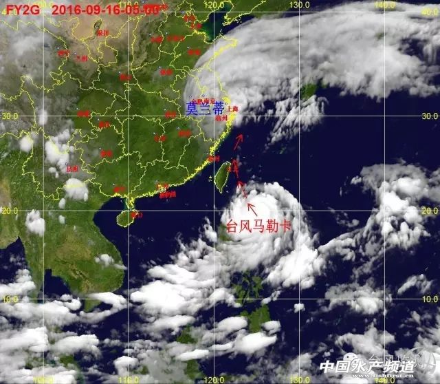 9月16日05時00分風云-2號衛星監測到的強臺風“馬勒卡”,可以清晰地看到“馬勒卡”巨大的個頭
