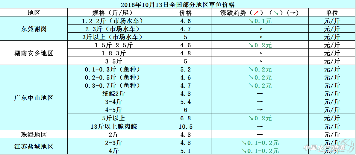 文/圖 中國水產頻道 張靜 中國水產頻道原創報道,本周各地的草魚價格相比上周都稍有下滑,價格下降幅度在0.1-0.2元/斤范圍內,導致整體行情趨向低迷狀態。現在草魚整體存塘量充足,加之近期江西等地的草魚上市供應量過多,導致市場供需呈現供大于求的局面,所以魚價會有所下降。10月13日各地草魚價格行情如下: 據悉,現在各地存塘的大規格黃顙魚存量都很少,例如浙江湖州地區存塘的黃顙魚多數是0.37-0.4斤/尾規格;廣東佛山地區存塘的黃顙魚以0.3斤左右/尾規格為主;廣東珠海地區存塘的黃顙魚則以0.27-0.28斤/尾規格為主。近期黃顙魚的市場銷量時好時壞,特別是國慶假期過后,各地的黃顙魚市場需求就有所縮減了,所以短期內魚價上漲難度較大。10月13日各地黃顙魚價格行情如下: 本周珠三角地區、湖南安鄉地區以及江蘇鹽城地區的鯽魚價格跟上周相比持平,整體價格無明顯波動變化。天氣變涼了,鯽魚的市場消費需求也開始平淡下來,至少鯽魚存塘供應量也在日漸減少,所以魚價方面短期內還是持平為主。10月13日各地鯽魚價格行情如下: 10月13日各地河蟹價格行情如下: 【關鍵字】: 草魚 黃顙魚 河蟹 水產養殖 中國水產頻道原創報道,轉載請說明出處 中國水產頻道 m.fuqitext.com ,違者追究法律責任, 謝謝合作。 |
