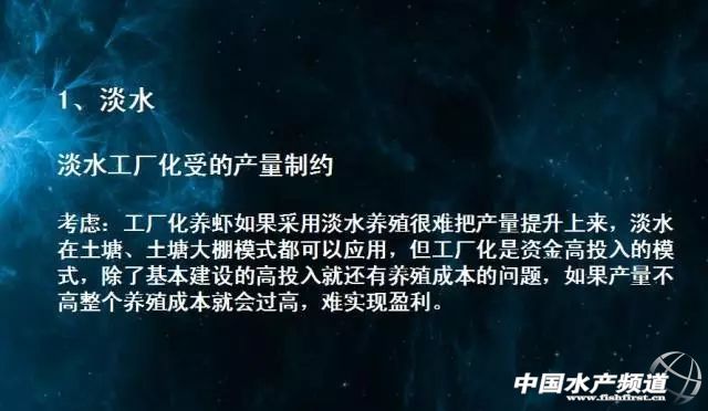 | 文/中國水產頻道張紅整理 中國水產頻道獨家報道,9月29日晚上20:00,養殖達人肖那思做客中國水產頻道公開課堂,分享工廠化科學養殖南美白對蝦。具體包括兩大內容:1、養蝦最應該搞明白的兩個問題。2、工廠化科學養蝦的廠區的設計與規劃。他認為,無論是養殖高手、無師自通者、企業技術服務還是研究所專家,他們都只是廣大養殖者學習和交流的對象,而不是把他們的經驗全部拿來直接為己所用。真正養殖成功的技術是要學會從科學的角度去思考。 (本文主要梳理嘉賓主講內容供大家參考及學習) 大家看到這張PPT圖片了嗎?這是我使用的與以往不一樣的圖片,這一次我想著重與大家聊一些別的東西,如果大家能夠聽明白我講的話,會更加實用。這張圖片是一位匠人地專注地做著什么,我非常喜歡這種精神。 一個匠人,最值得讓人尊敬的:1、一直堅持;2、持續不斷的思考。 我覺得我們的行業里比較缺乏這種精神,缺乏思考。我希望這次的分享是大家能跟著我的思路走。 這張PPT寫著一個問題:我們跟誰學養蝦,誰是我們的老師?有4個選項:1、研究專家,2、藥廠專家,3、民間高手,4、無師自通。 10年前,養蝦沒有那么多的技術和先進設備,但那個時候的蝦比現在要好養。和5年前的養殖手法和養殖技術對比,現在的方法和技術又是怎樣?我最近在一直思考一個問題:誰才是我們這個行業的老師?或者是誰在主導整個養蝦技術的方向? 在實際養殖過程當中,很多研究專家和養殖戶的中間是有斷層,他們并不能完全了解每一個地方的養殖情況,當然也有非常好的專家、老師,包括我學習的知識都是他們教給我的。但是專家只是在某一個領域或某個模式上專業。 如今我們是否有這樣的一種思維方式,現在很多的藥廠專家向大家講課,講技術指導,他們當中一部分是剛畢業的大學生,東聽一點,西聽一點,到了田間地頭后開始整合一些變成自己的東西,還要套上產品給廣大的養殖戶進行地毯式的上課,在每個塘口去講。 思考一下:是這群人在一線指導我們的技術,先不去評說這個技術的對與錯,它潛移默化地讓我們形成了一個用藥的思維方式。使得我們原來的可能考慮的思維方式——到底是技術出問題、水出問題、藻出問題,還是別的什么原因?而現在大家關注最多的出了問題之后第一反應是怎么用藥去解決問題,而不是沉下心來思考我這個塘口真正問題出在哪里? 我給大家講一個故事,在我養蝦第二年的時候,每天坐在藥店里寫上清單,記錄著每一天的用藥:第一天解毒、第二天壓底、第三天肥水、第四天消毒,然后第六天補充微量元素、第七天再肥水……在養殖過程中,我都列了用藥清單。 所以我要建議大家是時候把用藥思維轉換過來了,即是我今天要說的用科學的思維方式去養蝦。無論高手、無師自通者還是藥廠專家、研究專家,他們都是學習的對象,是老師。但這些老師既是我們學習和交流的對象,更多是與他們交流而不是“拿來主義”把這些經驗直接搬到塘頭。我估計以后會思考的蝦農才能夠在行業里生存。如我崇拜很多民間高手,他們從事養殖10多年,也沒有采用很先進的技術或者高超的技藝,但依然每年都能取得成功。我總結得出一點就是他們會思考。 所以在下面的分享中,請大家記住兩個字“思考” 大家認為養蝦最重要是什么:1、水源;2、模式;3、蝦苗;4、池形;5、密度;6、藥品;7、水質。大家可以想一想。 我給出的答案是:缺一不可。因為養蝦是一個養殖體系。有時我們感覺某此地方明明做好了,但為什么還是錯呢?這是因為沒有一個清晰的架構,去了解這個養殖體系里面的每一個重要因素都會連接在一起,它們之間都是相互影響和協作的,其中有一個零件(因素)轉不動,整個養蝦體系都是轉不起來的,后面還可引起養殖失敗。我們要用科學的角度去看待每一個影響養蝦的因素,而不是臆想得到的方法:如我今天想著應該下藥了嗎?你想過整體的連接嗎?我舉個例子,如用中央集污的方式去養蝦,你考慮放苗密度了嗎,前期的上水量了嗎?上水量和放苗密度、模式都會息息相關。我第一天養蝦的時候也是這么想的,我會幾個大招就行了:淘換幾個好的藥品、跟別人學幾個套路如多換水等就能把蝦養出來,其實這些都不對,養蝦真是一個體系,我們真要思考,深入地去想每一個環節,只要中間有一個環節沒有做好的話,就容易出問題。 大家看到這張PPT,是不是覺得很奇怪,因為我寫著所講的一切都是錯的! 這是因為前段時間我在上課時遇到一位老師,現在回想他說的一名話很有道理:如果我們用一個科學觀來概括今天的技術,也許到了明天就會把今天的技術全部推翻。所以我也不敢保證今天所講的內容都是正確的,甚至我現在回過頭來講我去年或者今年初分享的那些課程,都有一種臉紅的感覺,因為之前很多東西,現在看來都不重要,而且我給大家講述的那些東西時,認為是最重要的,也是一直強調的。 舉一個例子,前幾年時,EMS剛出來時,大家以為EMS是病毒,后來認為是細菌,現在定義EMS是由弧菌引起的病原。所以說隨著科學的進步以及大家對水產這個科技大門打開得越深,很多理論都會被推翻,會出來新的認知。所以不能太早蓋棺定論地認為我們現在講的東西都是對的,我們無時不刻地都需要思考、沉淀下來。我講的養蝦的重點原來是什么,現在又是什么? 我和我的團隊一直也在聊:為什么我