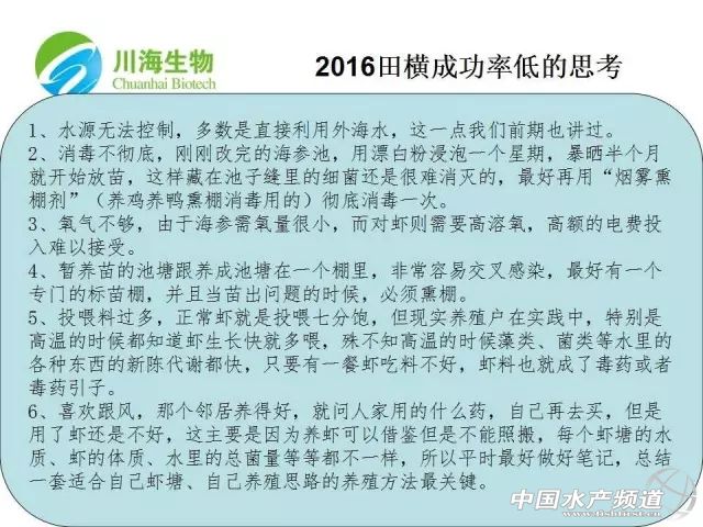 | 文/圖 中國水產頻道 合影 中國水產頻道獨家報道,從2014年開始,全國海參市場持續低迷。據悉,成品參價格從輝煌期的80-100元/斤攔腰減半至50元/斤甚至更低,逐漸觸底成本價,過往的暴利時代已經一去不復返。經歷了長時間的低迷,海參行業迎來了新一輪的洗牌,現今面臨著全新的產業發展方向:改變傳統的粗放養殖模式與管理方法,加大技術投入增產增效;豐富養殖品種,通過合理混養降低風險;改變傳統高大上的銷售思路,加大下游市場拓展及互聯網對接,向大眾養生、大眾餐飲的方向發展。 為探討南北海參產業轉型方向、促進產業升級,11月1日由青島農業大學、青島藍谷水產合作社、江蘇好潤生物科技有限公司牽頭、《水產前沿》雜志協辦的第一屆南北海參產業轉型升級論壇在青島農業大學學術報告廳順利召開。論壇旨在推動海參行業轉型升級,特邀海參行業各個領域的實戰專家、行業精英共300余人齊聚于青島農業大學,共謀海參事業可持續發展。 會議現場 藍谷水產孫德福總經理 此次論壇的內容主要聚焦海參的養殖、加工領域以及“互聯網+水產”的介紹。其中養殖版塊主要由煙臺川海生物技術有限公司區域經理方玉軍、江蘇好潤生物科技有限公司總經理劉愛民、霞浦縣海參協會秘書長余致遠帶來,他們分別就《南美白對蝦養殖之海參棚的華麗轉身》、《海參池塘混養日本對蝦高產技術及模式設計》、《福建魚排海參養殖概況》做了報告。另外還有現青島有機有利生態農業總經理(原阿里巴巴山東地區負責人)蕭大軍、國家商務部電子商務中心首批特聘專家講師王文明、虎虎生鮮品牌創始人趙小虎、青島農業大學海洋工程與科學學院副教授姜令緒分別就水產互聯網+、海參加工分享了他們的報告內容,為海參產業加大下游市場拓展及互聯網對接提供了方向。 參會嘉賓 以下分享部分嘉賓的PPT 方玉軍 《南美白對蝦養殖之海參棚的華麗轉身》 劉愛民 《海參池塘混養日本對蝦高產技術及模式設計》 余致遠 《福建魚排海參養殖概況》 想了解本會議更多信息,請訪問 http://m.fuqitext.com/thread-70059-1-1.html 【關鍵字】:成品參 海參 水產養殖 |