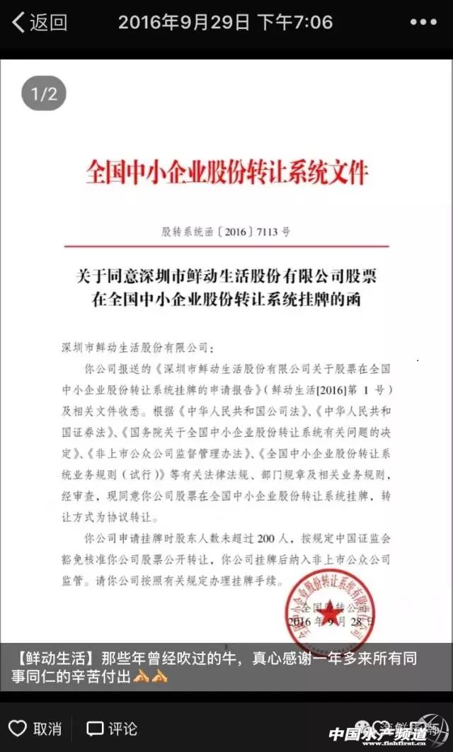 文/ 海鮮指南(ID:seafood-guide) 沈基文 11月16日,深圳鮮動生活股份有限公司掛牌敲鐘儀式在北京舉行 9月底拿到批文時,鮮動生活總經理侯碧生曾在朋友圈寫道:“那些年曾經吹過的牛,真心感謝一年多來所有同事同仁的辛苦付出。”從2015年5月正式著手準備,到今年9月27日正式掛牌新三板,再到上市敲鐘儀式,侯碧生在接受海鮮指南采訪時,對這一年來的過程頗有感慨:“在拿到批文的那一瞬間,整個人松了一口氣,經過一年多的準備總算有了結果。完成上市之后可以更好的把精力放在業務上,將業務做得更好! 業績的增長 基于線下務實的耕耘 公告顯示,鮮動生活2014年度、2015年度、2016年1-2月營業收入分別為8603.32萬元、1.22億元、2328.98萬元;凈利潤分別為83.55萬元、348.71萬元、84.96萬元,從數據上看,2015年的業績相較是一個不錯的增長,對于這種增長,侯碧生總結道:“業績的增長主要是電商和餐飲標準化食材業務的增長,基于線下務實的耕耘! 除了大力第三方電商平臺的合作,說起線下務實的耕耘,鮮動生活的確走在了行業的前沿。建立全國13個分倉,覆蓋沃爾瑪、山姆會員店、永旺等大型商超500多個,也為餐飲企業提供水產餐飲食材及半成品的標準化開發,今年又繼續布局線下自營店,這也是鮮動生活與行業內其他上市企業的不同之處!斑@13個分倉的建立不是那么容易,我們在上游渠道的資源、自有品牌的建立、以及我們自己即將要做的O2O直營店,我們應該更垂直一些。”侯碧生表示。 從上游到消費者之間供應鏈的把控,成為一個重度垂直的企業,在水產品領域內做到絕對優勢,或許是鮮動生活未來的發展之一!敖酉聛砦覀兺瑯訒蟹定可持續的業績增長,這種增長是我們鮮動生活一直追求的,我們希望鮮動生活在行業做一個可持續發展的企業。”他說。 想做生鮮類的ZARA 供應鏈把控是關鍵 “水產行業是一個非常傳統的行業,如果要做到全國性的品牌影響力,無論是深耕水產行業,還是從別的行業借鑒,學習能力非常關鍵。我們最近有一個想法就是想做生鮮類的ZARA!焙畋躺鷮ur指南透露,“哪怕是無人區,哪怕是沒有人做,我們也非常原意從行業發展的角度創新的去做一些事,ZARA對供應鏈的要求比較高,我們也會借鑒別的行業一些先進的理念和管理經驗! 服裝品牌ZARA是服裝業內快時尚的典型代表,通過量少款多的極速更新模式成為全球快時尚服裝品牌佼佼者,實際上ZARA成功至關重要的環節是其靈敏的供應鏈系統。 對于水產行業而言,要實現水產品到C端消費者手中的快速流轉,上游的養殖場、加工企業、下游的渠道商等銷售渠道乃至持續不斷的消費者教育等市場培育工作起著相當關鍵的作用,這些都需要與產業鏈上下游建立密切的合作關系,在對產業鏈上下游的把控上,鮮動生活正在不斷的加強。 侯碧生告訴海鮮指南,鮮動生活目前最主要的工作就是完成既定的目標,包括供應鏈的梳理、線上電商和線下業務的拓展以及線下直營店的落地。當然,各個業務的拓展離不開團隊與人才的推動,“現在團隊都比較務實、非常能吃苦、執行能力也非常強。隨著業務的不斷拓展,我們也歡迎更多厲害的人物加入,在人才引進方面也會多花一些精力! |