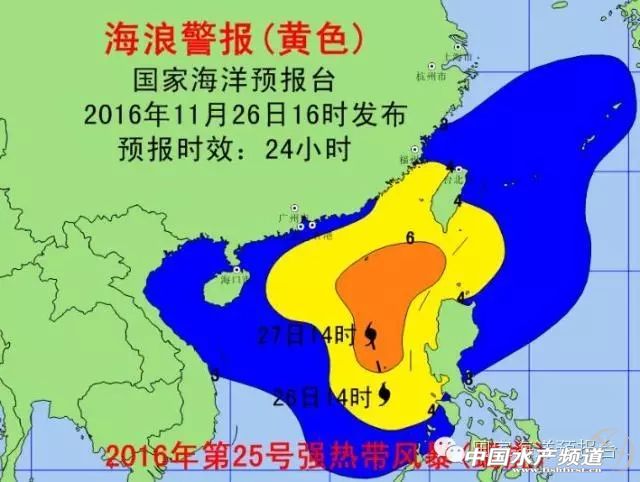 中國水產頻道報道,第25號臺風“蝎虎”今日生成,27日10時中央氣象臺繼續發布臺風黃色預警: