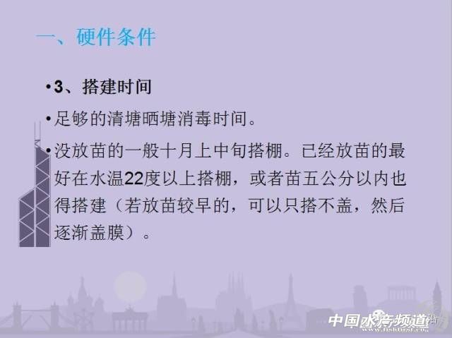 與常規(guī)的露天養(yǎng)殖的基本要求差不多,這里以南美白對蝦作為討論對象。水溫:為什么要做冬棚,目的是把水溫提高,年頭往前推,盡快地放苗,比別人趕早出蝦,蝦價可觀。年尾的時候,晚造蝦可以延后半個月-1個月,一些區(qū)域甚至可以更長時間。盡可能的延后,價格就越好。至于具體多少度,這與露天池差不多,不再多說了。