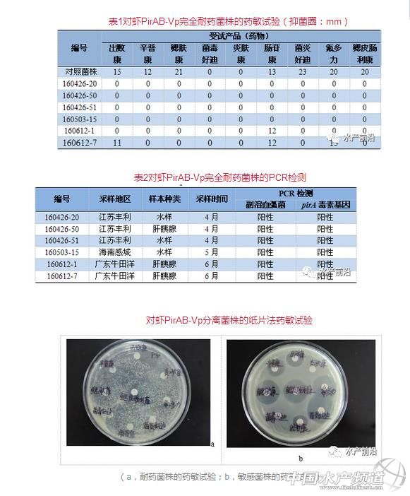 文/圖 廣州利洋水產(chǎn)科技股份有限公司 譚鮮英 張文文 戚瑞榮 煙臺大學(xué)陳營 在筆者團(tuán)隊的檢測中,共發(fā)現(xiàn)6個PirAB型副溶血弧菌的分離菌株對所有試驗藥物產(chǎn)品均不敏感,即俗稱的超級細(xì)菌。雖然出現(xiàn)的數(shù)量少,但在對蝦疾病的防治中應(yīng)給予足夠的重視,否則一旦發(fā)病或蔓延擴(kuò)散,將沒有抗生素類產(chǎn)品可用 利洋公司自2014年開始進(jìn)行對蝦致病性副溶血弧菌的流行病學(xué)調(diào)查、病原菌的分離、PirAB毒素基因的PCR檢測、毒力菌株的藥敏試驗等,為對蝦的養(yǎng)殖生產(chǎn)實(shí)踐提供了科學(xué)的理論指導(dǎo)。在我們的檢測中,共發(fā)現(xiàn)6個PirAB-Vp分離菌株對所有試驗藥物產(chǎn)品均不敏感,即我們俗稱的超級細(xì)菌。雖然出現(xiàn)的數(shù)量少,但在對蝦疾病的防治中應(yīng)給予足夠的重視,否則一旦發(fā)病或蔓延擴(kuò)散,將沒有抗生素類產(chǎn)品可用。 一、材料和方法 1、病蝦和水樣的采集 在養(yǎng)殖南美白對蝦發(fā)病時,采集病蝦的肝胰腺的和水樣,接種TCBS平板。然后,送利洋公司研究所進(jìn)行PirA毒素基因的PCR檢測,并對陽性菌株做藥敏試驗分析。 2、病蝦和水體的PirAB-Vp檢測 挑取TCBS平板上的單菌落或轉(zhuǎn)接的過夜培養(yǎng)物,煮沸制備細(xì)菌基因組模板,采用PCR方法進(jìn)行副溶血弧菌和PirA毒素基因的檢測。 3、藥敏試驗 對經(jīng)過PCR檢測陽性的PirAB-Vp菌株,采用紙片法進(jìn)行藥敏試驗,通過測量濾紙片周圍出現(xiàn)的抑菌圈的大小,衡量其對所試藥物的敏感程度。所試藥物為公司的9種抗生素類產(chǎn)品,通過實(shí)驗確定適當(dāng)?shù)乃幬餄舛炔⒆孕兄苽渌幟艏埰志χ睆絛≦14mm即為不敏感或耐藥。 二、結(jié)果 1、對蝦PirAB-Vp菌株中水產(chǎn)超級細(xì)菌的發(fā)現(xiàn) 今年二季度,從對蝦肝胰腺和養(yǎng)殖水體中共檢出261株P(guān)irAB-Vp,對其中的108株分離菌進(jìn)行了藥敏試驗分析,共發(fā)現(xiàn)6株菌對全部所試藥物(產(chǎn)品)不敏感或耐藥,表現(xiàn)為完全的耐藥性,見表1。對蝦PirAB-Vp分離菌株對常用的水產(chǎn)藥物均耐藥,呈現(xiàn)水產(chǎn)超級細(xì)菌的特征。在抑菌圈里生長的稀疏菌落,是典型耐藥菌株的表現(xiàn),見圖1a。而同時從采集的樣本中分離的對照菌株,在藥敏試驗中出現(xiàn)清晰的抑菌圈,見圖1b。 2、對蝦PirAB-Vp毒力與耐藥性之間的關(guān)系 在江蘇、海南、廣東三個地區(qū)的PirAB-Vp分離菌株中,均發(fā)現(xiàn)超級耐藥的水產(chǎn)副溶血弧菌,而且肝胰腺和水體都有超級耐藥菌株分離。經(jīng)pirA毒素基因檢測,本文中6株全部耐藥的菌株均為攜帶PirAB毒素基因的副溶血弧菌,即PirAB-Vp菌株。在二季度我們共檢出261株P(guān)irAB-Vp,同時也檢出45株攜帶PirAB毒素基因的非副溶血弧菌。但未在PirAB非副溶血弧菌和不攜帶PirAB毒素基因的對蝦弧菌中發(fā)現(xiàn)全部耐藥的超級細(xì)菌,見表2。 三、討論 1、對蝦PirAB副溶血弧菌超級細(xì)菌出現(xiàn)的意義 對蝦致病性副溶血弧菌是一個特殊的菌株,完全不同于從臨床上和環(huán)境中分離的菌株,相關(guān)的藥敏試驗分析報道很少。在的日常檢測中,我們發(fā)現(xiàn)了6株對多種水產(chǎn)常用抗生素完全耐藥的PirAB-Vp菌株,即水產(chǎn)超級細(xì)菌。如果這樣的菌株引起對蝦發(fā)病或在水產(chǎn)養(yǎng)殖系統(tǒng)中大量繁殖,將沒有可用的藥物去控制和治療。雖然發(fā)現(xiàn)超級細(xì)菌的數(shù)量少,但涵蓋廣東、海南、江蘇三個地區(qū),這樣生態(tài)上的廣范分布,可能會預(yù)示今后其出現(xiàn)的幾率更大、范圍更廣,隨之帶來的生物安保防控問題也會加大。提示我們在今后對蝦疾病的防控中,要注意內(nèi)外兼顧,科學(xué)施治,切斷病原菌流行和傳播的途徑,控制疾病的發(fā)生和發(fā)展。 2、對蝦PirAB副溶血弧菌耐藥性產(chǎn)生的機(jī)制 細(xì)菌的耐藥性多由質(zhì)粒攜帶,在環(huán)境不利條件脅迫時,耐藥質(zhì)粒在群體間加速轉(zhuǎn)移,使得耐藥菌株被選擇出來而成為群落中的優(yōu)勢種群。而多個耐藥質(zhì)粒或基因同時出現(xiàn)在一個菌株的細(xì)胞內(nèi),這可能是出現(xiàn)超級細(xì)菌的主要原因。其次,因為每種藥物的殺菌機(jī)制及菌株的耐藥機(jī)制均不相同,同時出現(xiàn)對所有藥物耐藥的幾率極低。但如果細(xì)菌的某些通用機(jī)制發(fā)生改變,如細(xì)菌細(xì)胞膜上負(fù)責(zé)轉(zhuǎn)運(yùn)藥物的外排通道開啟,使得藥物不能進(jìn)入細(xì)胞內(nèi)發(fā)揮作用,會造成對所有試驗藥物均不敏感,這個機(jī)制更有可能是超級細(xì)菌出現(xiàn)的原因。 關(guān)于耐藥菌株的來源,目前還不清楚。推斷池塘底泥中、附著物上、水生生物體內(nèi)都可能是耐藥菌株的來源,進(jìn)而通過水體、附著物、水生生物傳播,造成超級細(xì)菌的流行和擴(kuò)散。 3、對蝦PirAB副溶血弧菌毒力與耐藥性之間的關(guān)系 毒力和耐藥的出現(xiàn)往往具有相關(guān)性,兩者多由質(zhì)粒攜帶,受環(huán)境壓力的脅迫,質(zhì)粒在細(xì)菌群落中出現(xiàn)轉(zhuǎn)移,帶有毒力的菌株往往同時帶有耐藥性,使其在生態(tài)系統(tǒng)中具有競爭的優(yōu)勢,更容易侵入宿主體內(nèi)而致病。最新的研究證實(shí),PirAB-Vp攜帶一個約69kb的大