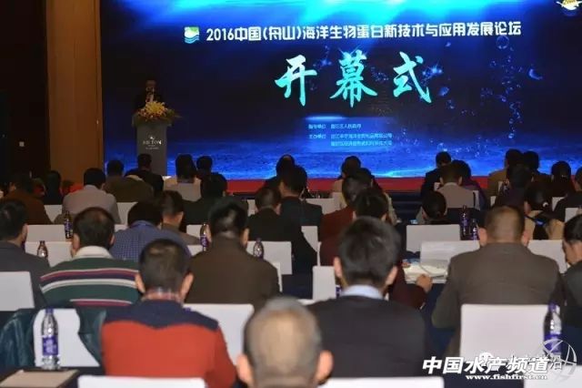 2016中國(舟山)海洋生物蛋白新技術與應用發展論壇開幕式 中國水產頻道獨家報道,中國海洋大學麥康森院士、普陀區人民政府常務副區長張文科、浙江豐宇海洋生物制品有限公司董事長張友國、中國水產流通與加工協會常務副會長崔和一起啟動論壇水晶球。 “未來解決魚粉魚油短缺的方向是提高海洋蛋白源與海洋脂肪源的高效利用。”12月10日,在浙江舟山由浙江豐宇海洋生物制品有限公司、普陀區經濟信息化和科學技術局主辦的“2016中國(舟山)海洋生物蛋白新技術與應用發展論壇”上,麥康森院士對價格日益上漲且產量趨于下滑的魚粉魚油問題提出他的觀點。以“探索水產養殖新技術,賦能飼料行業新驅動”為主題,展示海洋生物蛋白技術最新成果的盛會吸引了中國海洋大學麥康森院士、蘇州大學葉元土教授、海南大學陳國華教授、寧波大學周岐存教授以及通威、恒興、新希望、天邦等近200位知名專家、飼料企業配方師、采購、以及魚粉生產商貿易商。