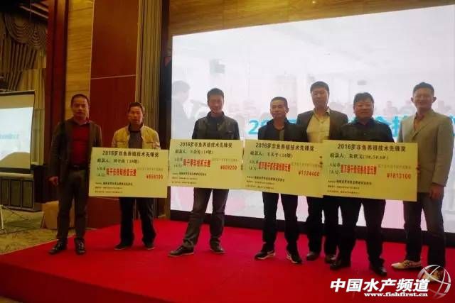 產業協作新模式座談 其六,表彰與鼓勵。今年5月份,由促進會在海南文昌選出12戶示范養殖戶和對應的共25口示范塘,養殖戶與促進會、海南信世安水產品有限公司、臻笑水產技術服務中心四方共同簽訂《羅非魚規范養殖試驗合作協議》,主辦三方為養殖戶的養殖過程提供全程跟蹤及技術服務,以探尋出一條海南羅非魚健康可持續養殖的長遠發展之路。為了總結、表彰和鼓勵,促進會、海南信世安、臻笑三方在促進會年會期間,共同舉行“2016羅非魚養殖技術先鋒獎”的頒獎儀式。朱世文、田守南、王天平、王金勇四位參加示范的養殖戶獲得獎金及獎牌鼓勵,其中獎金以到廠的合格魚數量為計量標準,四位獲獎者中的最高獎金達到1.8萬元。