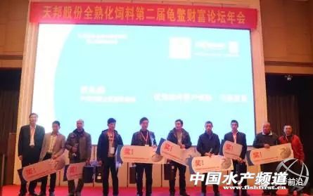 文/圖 中國水產頻道 蔡林宏 通訊員/寧波天邦股份有限公司飼料事業部 李黎 張亞卓 中國水產頻道獨家報道,我國的龜鱉養殖起步于20世紀70年代,主要產區在華中地區的湖南、湖北和華南地區的廣東。30多年來,龜鱉養殖經歷了從利用天然資源粗放式養殖到人工集約化養殖的發展過程,現已成為我國淡水漁業中發展速度最快、效益最好、集約化程度最高的產業之一。2016年全國甲魚養殖產量約有34.13萬噸。浙江省甲魚產量達14.08萬噸,其中龜類養殖量1.12萬噸,總產值超過80億元。浙江作為我國龜鱉產業第一大省,占全國甲魚產量近50%。 2016年12月20日,天邦股份第二屆全熟化飼料龜鱉財富論壇(杭州站)在杭州遠東賓館圓滿落幕。在寧波天邦股份有限公司(以下簡稱天邦股份)飼料事業部滬浙閩贛大區副總經理張兆峰的主持下,中國龜鱉產業協會常務副秘書長顧博賢教授,杭州養鱉行業協會秘書長王毅、天邦股份副總裁、飼料事業部總裁蘇禮榮,天邦股份研究院院長陸裕肖,天邦股份研究院水產研究所所長趙帥兵等嘉賓和來自浙江、江蘇、湖北、江西等地多達120人的經銷商、養殖戶參加了本屆龜鱉財富論壇。  會議現場