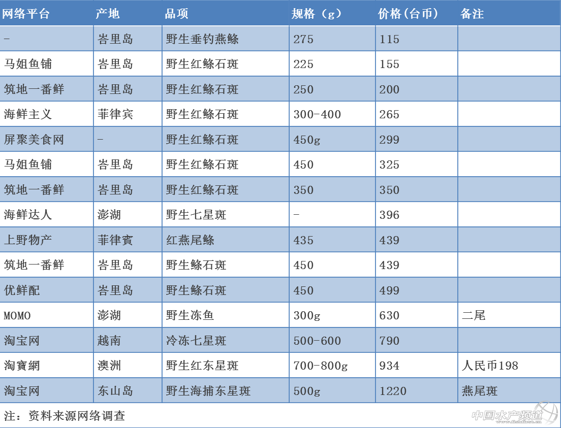 東星斑捕撈時體色變化極大 奧德海產(chǎn)公司前任銷售總監(jiān)Lloyd Moskalik在接受美國CNN採訪時表示,東星斑在香港的需求遠遠超過供給。我們有5個批發(fā)商需要紅東星斑,每周能出貨10-15噸。換句話來說,我們一周可以賣掉將近2000條魚。據(jù)我所知,在香港一共應(yīng)該有30-50個類似的供應(yīng)商,市場規(guī)模可想而知。 根據(jù)香港活海鮮批發(fā)商提供的報價,捕撈東星斑活魚市場批發(fā)價為港幣643元/kg(臺幣1580元/臺斤),養(yǎng)殖魚為305元/kg(臺幣750元/臺斤);捕撈的西星斑為港幣317元/kg(臺幣780元/臺斤),養(yǎng)殖的為港幣156元/kg(臺幣384元/臺斤)。 東星斑產(chǎn)銷概況 中華海洋生技公司謝清輝指出,從澎湖、大陸、菲律賓、印尼峇里島一路到澳洲大堡礁的東星斑都是同一個品種。據(jù)非正式估計,香港活魚市場一年需要2.5萬噸,東星斑占3000-4000噸,中國大陸則有超過1萬噸的東星斑需求,由整個東南亞地區(qū)及澳洲供應(yīng)。 業(yè)者陳建志指出,東南亞地區(qū)包括菲律賓、馬來西亞到印尼這一線,有許多以垂釣或魚船捕獲的東星斑、燕尾斑等星斑(紅條)類的野生魚,如果是魚苗或未到上市規(guī)格,則會在箱網(wǎng)里蓄養(yǎng),達到規(guī)格以后再出售。東南亞箱網(wǎng)東星斑產(chǎn)地價平均大約臺幣400-600元/kg,因產(chǎn)地、產(chǎn)季或品質(zhì)等因素,最便宜的甚至只有臺幣200元/kg。 東南亞出產(chǎn)的東星斑以冰鮮或冷凍魚方式運銷到消費地的價格較便宜。菲律賓輸入臺灣的紅條大多是冰鮮魚,印尼等較遠的地區(qū)則以冷凍魚出貨。以活魚運銷,運輸成本加上魚只損耗,到消費地價格翻2-3倍是很正常的。 “東星斑活魚桌上價每公斤:臺灣4000元、香港5000元、上海7000元,北京8000元,大連10000元,越往北方走價格越高貴。”謝清輝說。 1、臺灣地區(qū) 30年前臺灣就有繁殖,余玉柱有做一些,5寸售價50元,當(dāng)時養(yǎng)殖技術(shù)還不成熟。10年前戴昆財開始出苗,有不少人試養(yǎng),臺灣的及海南的5-6cm東星苗50-60元,1cm約9-10元。 目前臺灣有箱網(wǎng)及室內(nèi)場養(yǎng)殖東星斑,數(shù)量不多。陸上室內(nèi)養(yǎng)殖場有中華海洋生技、龍佃、瀚頂及晟名等企業(yè),場址在屏東縣林邊、枋寮、長治及鹽埔,其中有部分企業(yè)已經(jīng)終止東星斑項目。陳建志指出,目前東星斑的陸上養(yǎng)殖,因為市場需求以及經(jīng)濟價值高,逐漸朝向緯度較高的環(huán)境來飼養(yǎng),大多數(shù)的“新興投入者”也都朝向室內(nèi)養(yǎng)殖為主。 屏東5個魚販有抓東星斑活魚,收購規(guī)格600-800g,行情價1.2元/g,每次收購量50-200尾,餐廳賣4-4.8元/g,相當(dāng)于2400-2880元/臺斤。 國內(nèi)活魚供貨來源還有澎湖的一支釣野生魚,收購價800-1000元/kg。其他以魚槍(潛水)、延繩釣及刺網(wǎng)捕獲的東星斑收購價只有300-500元/kg。澎湖一年能供貨8個月,活魚只有冬季4個月是欠貨的,人工養(yǎng)殖魚只能做這4個月的活魚市場。 根據(jù)國內(nèi)網(wǎng)絡(luò)平臺的販售調(diào)查,冷凍東星斑大多標(biāo)榜為野生垂釣魚獲,來源主要有印尼峇里島、越南、菲律賓以及澎湖,規(guī)格多在尾重250-450g,價格在150-500元之間,相當(dāng)于 600-800元/kg。據(jù)了解,國內(nèi)網(wǎng)絡(luò)平臺販售的東星斑,有很多是燕尾星斑混充,連西星斑都還不是,規(guī)格也多半偏小,尾重在200-300多g,因此售價相當(dāng)?shù)土?BR> 2、大陸地區(qū) 大陸地區(qū)10多年前開始生產(chǎn)東星斑苗,近年海南島東星斑受精卵產(chǎn)量不少。根據(jù)海南省南海魚類種苗會2015年資料,東星斑魚卵價格每公斤人民幣800元,1-3cm魚苗人民幣0.5-0.6元/尾,5-8cm規(guī)格的人民幣0.7-0.9元/cm。去年中國大陸東星斑小魚養(yǎng)殖需求不大,價格較低,但其魚苗成長較慢,中苗價格合理適中。 在海南島養(yǎng)殖東星斑成魚方面,紅東(鮮活)規(guī)格1.0-1.6市斤魚價人民幣110-130元/市斤(臺幣660-780元/臺斤),黑東則只有人民幣68元(臺幣408元/臺斤)。黑東星斑價格較為穩(wěn)定,紅東星斑價格范圍較廣。此成品魚價格為海南養(yǎng)殖場收魚價格,活鮮的市場價會高出人民幣5-30元,高檔魚的市場價會高出收購價較多。 中國大陸?zhàn)B殖東星斑以流水式養(yǎng)殖,一天7-10倍輪流,平均一天換8次水。北方天津也有場,采取半循環(huán)養(yǎng)殖,成績不穩(wěn)定。一天換20%-30%水,效果不好,密度也不能高。用藥控制存活率也不高。大陸?zhàn)B的較多黑東,價格只有紅東的1/2-1/3,有的使用人工著色料。 3、日本 日本也有生產(chǎn)苗,有10家以上飼養(yǎng),大魚一直不成功,產(chǎn)季3-6月。 4、菲律賓 菲律賓的紅條集散地主要在巴拉望,捕獲的野生成魚及魚苗或未達規(guī)格的魚都蓄養(yǎng)在箱網(wǎng),產(chǎn)地價臺幣400-600元/kg。因距離臺灣、近,巴拉望紅條類銷到臺灣多以冰鮮運銷。 5、越南 在越南頭頓巴第沿海的魚排(海上箱網(wǎng))也養(yǎng)了不少東星斑,主要的養(yǎng)殖水深介于4-5米之間。這類的魚排養(yǎng)殖,普遍出現(xiàn)在南海周邊的海域,包括中國、越南、泰國、印尼、馬來西亞到最近興起的菲律賓,也都是以這類的魚排為主要的養(yǎng)殖設(shè)施。越南箱網(wǎng)業(yè)者多向海南買苗,養(yǎng)成后有大陸及香港的活魚船過去收購。在捕撈方面,中南半島因海域污染造成野生紅條資源較少。 6、馬來