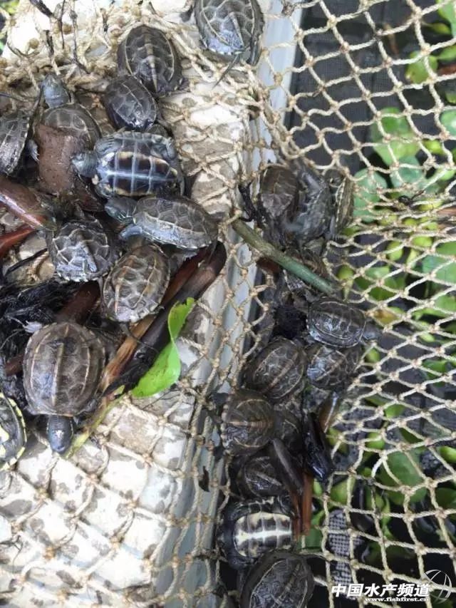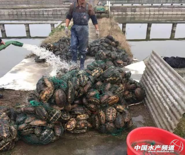 從養(yǎng)殖基地收獲的中華草龜打包待售